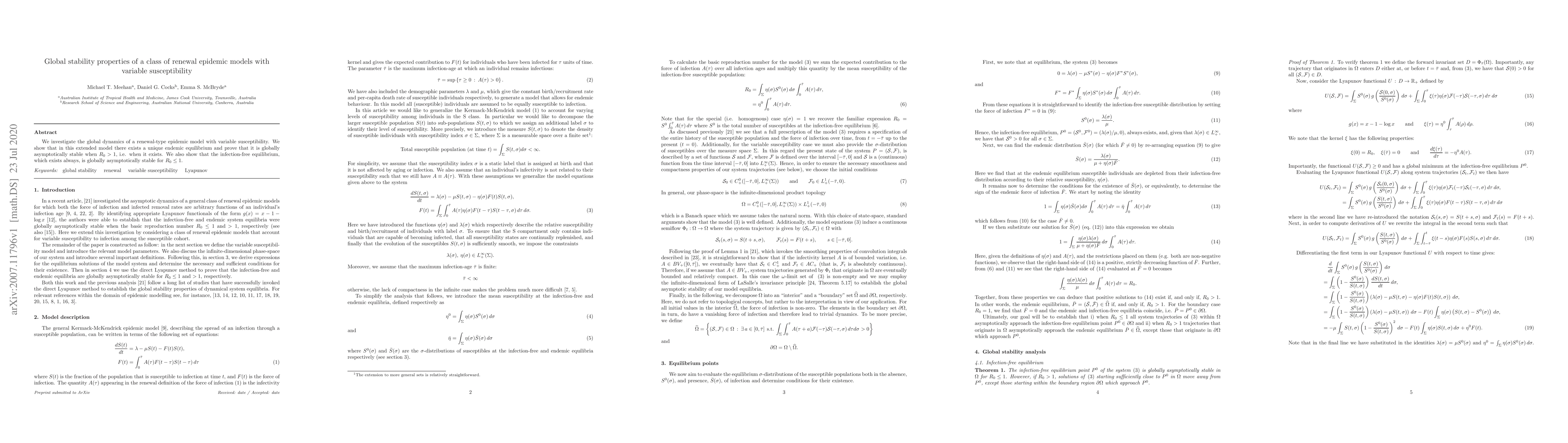 We investigate the global dynamics of a renewal-type epidemic model with variable susceptibility. We show that in this extended model there exists a unique endemic equilibrium and prove that it is globally asymptotically stable when $R_0 > 1$, i.e. when it exists. We also show that the infection-free equilibrium, which exists always, is globally asymptotically stable for $R_0 \leq 1$.