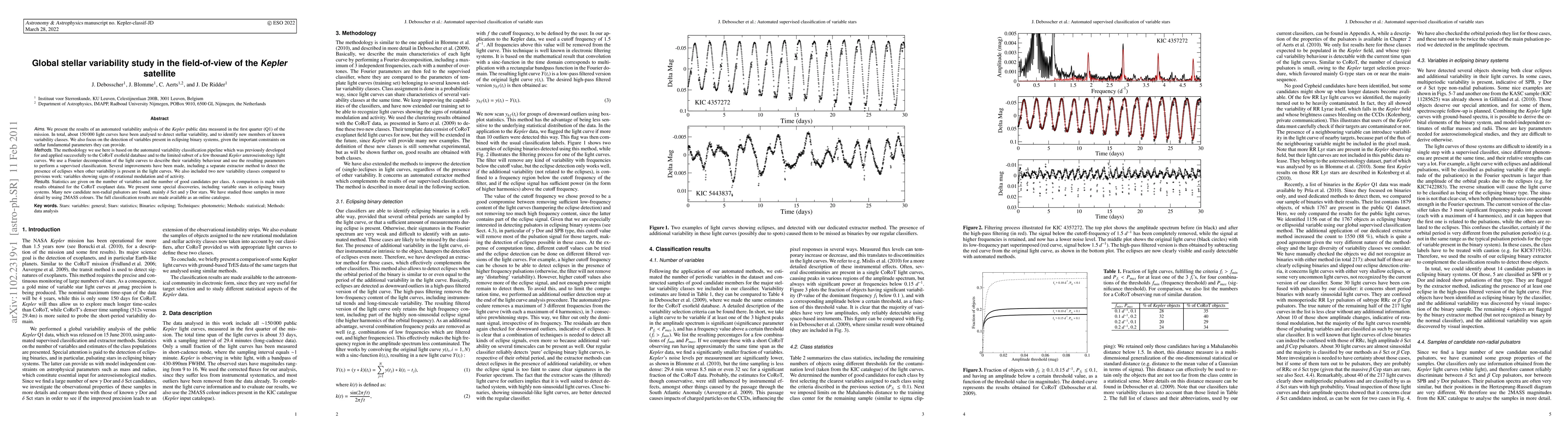 We present the results of an automated variability analysis of the Kepler public data measured in the first quarter (Q1) of the mission. In total, about 150 000 light curves have been analysed to detect stellar variability, and to identify new members of known variability classes. We also focus on the detection of variables present in eclipsing binary systems, given the important constraints on stellar fundamental parameters they can provide. The methodology we use here is based on the automated variability classification pipeline which was previously developed for and applied successfully to the CoRoT exofield database and to the limited subset of a few thousand Kepler asteroseismology light curves. We use a Fourier decomposition of the light curves to describe their variability behaviour and use the resulting parameters to perform a supervised classification. Several improvements have been made, including a separate extractor method to detect the presence of eclipses when other variability is present in the light curves. We also included two new variability classes compared to previous work: variables showing signs of rotational modulation and of activity. Statistics are given on the number of variables and the number of good candidates per class. A comparison is made with results obtained for the CoRoT exoplanet data. We present some special discoveries, including variable stars in eclipsing binary systems. Many new candidate non-radial pulsators are found, mainly Delta Sct and Gamma Dor stars. We have studied those samples in more detail by using 2MASS colours. The full classification results are made available as an online catalogue.