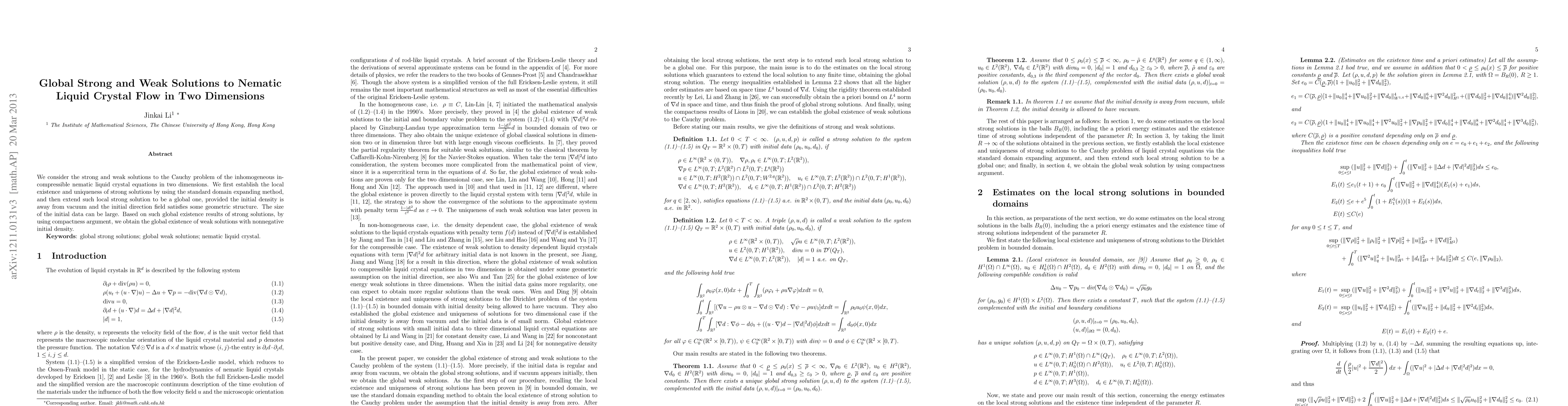 This paper investigates the existence and uniqueness of strong and weak solutions for the two-dimensional nematic liquid crystal flow equations. It establishes local strong solutions and extends them globally under certain initial conditions, followed by the global existence of weak solutions using compactness arguments.