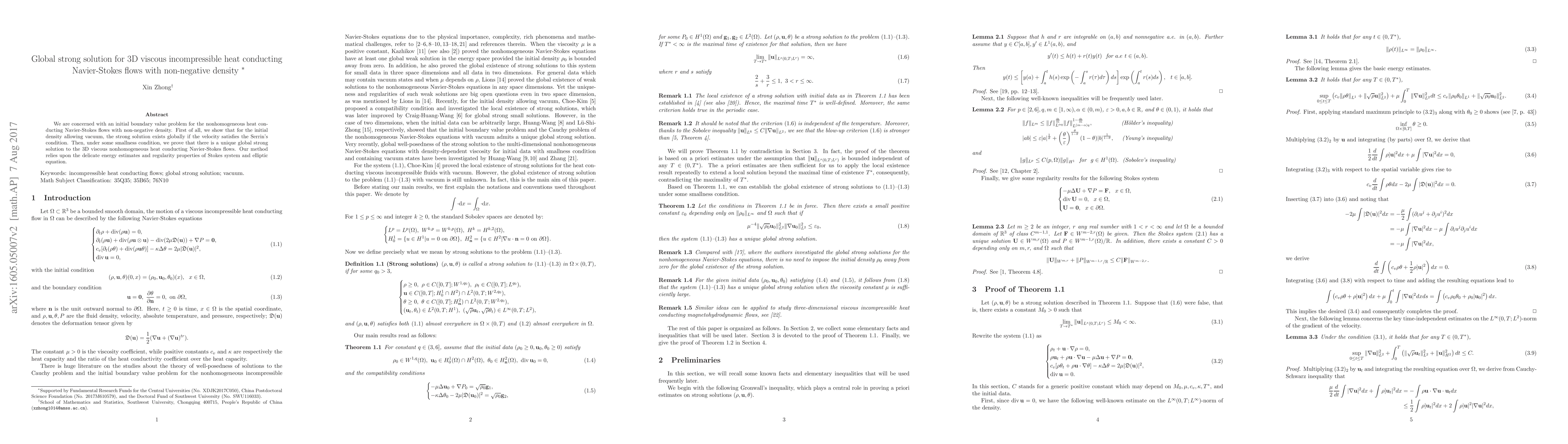This paper proves the existence of a global strong solution for 3D viscous incompressible heat conducting Navier-Stokes flows with non-negative density, provided the velocity satisfies Serrin's condition and certain smallness conditions are met. The proof utilizes energy estimates and properties of the Stokes system and elliptic equations.
