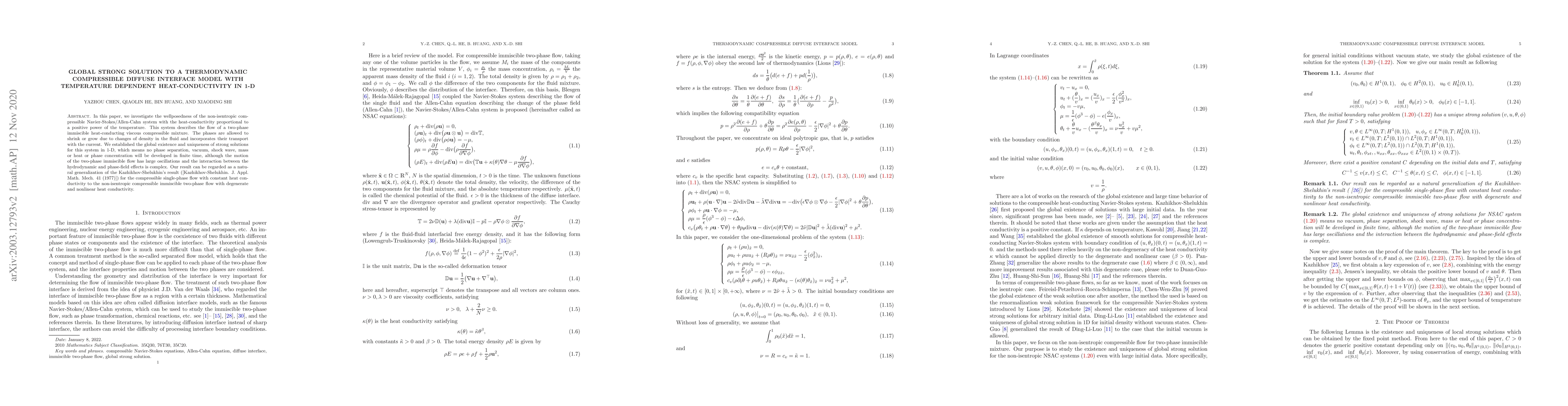 The paper presents a rigorous mathematical analysis of a complex thermodynamic compressible diffuse interface model, providing global strong solution existence and uniqueness results.