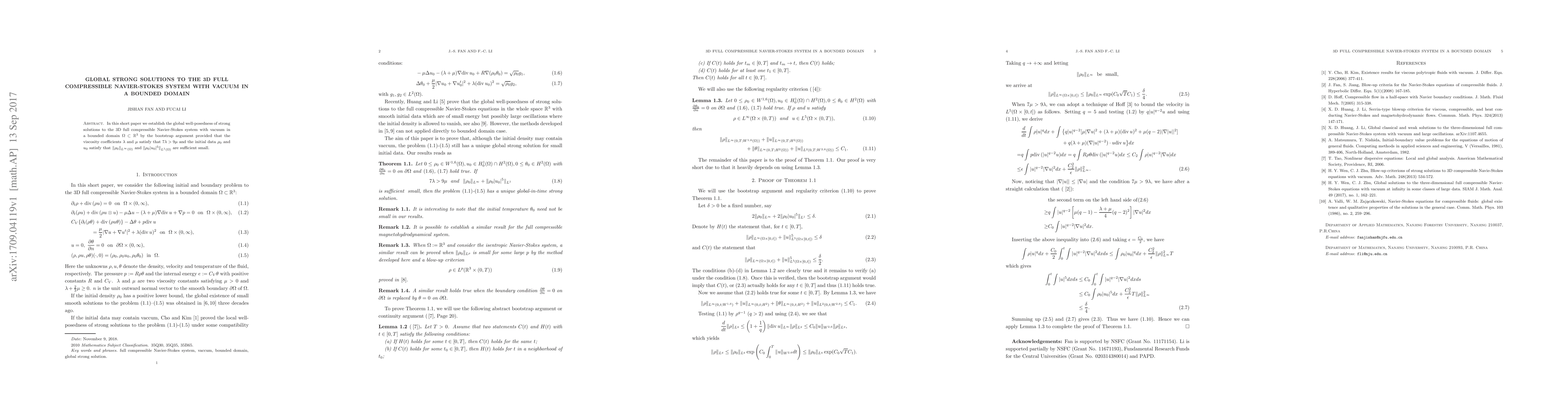 This paper establishes global strong solutions to a 3D compressible Navier-Stokes system with vacuum in a bounded domain, requiring specific conditions on viscosity coefficients and initial data.