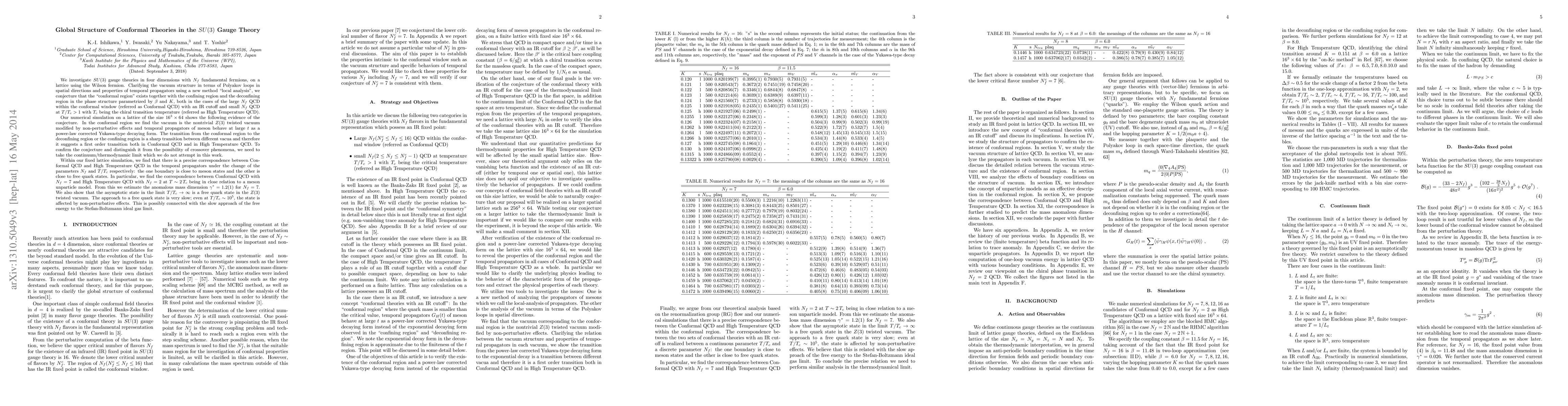 We investigate SU(3) gauge theories in four dimensions with Nf fundamental fermions, on a lattice using the Wilson fermion. Clarifying the vacuum structure in terms of Polyakov loops in spatial directions and properties of temporal propagators using a new method "local analysis", we conjecture that the "conformal region" exists together with the confining region and the deconfining region in the phase structure parametrized by beta and K, both in the cases of the large Nf QCD within the conformal window (referred as Conformal QCD) with an IR cutoff and small Nf QCD at T/Tc>1 with Tc being the chiral transition temperature (referred as High Temperature QCD). Our numerical simulation on a lattice of the size 16^3 x 64 shows the following evidence of the conjecture. In the conformal region we find the vacuum is the nontrivial Z(3) twisted vacuum modified by non-perturbative effects and temporal propagators of meson behave at large t as a power-law corrected Yukawa-type decaying form. The transition from the conformal region to the deconfining region or the confining region is a sharp transition between different vacua and therefore it suggests a first order transition both in Conformal QCD and in High Temperature QCD. Within our fixed lattice simulation, we find that there is a precise correspondence between Conformal QCD and High Temperature QCD in the temporal propagators under the change of the parameters Nf and T/Tc respectively. In particular, we find the correspondence between Conformal QCD with Nf = 7 and High Temperature QCD with Nf=2 at T ~ 2 Tc being in close relation to a meson unparticle model. From this we estimate the anomalous mass dimension gamma* = 1.2 (1) for Nf=7. We also show that the asymptotic state in the limit T/Tc --> infty is a free quark state in the Z(3) twisted vacuum.