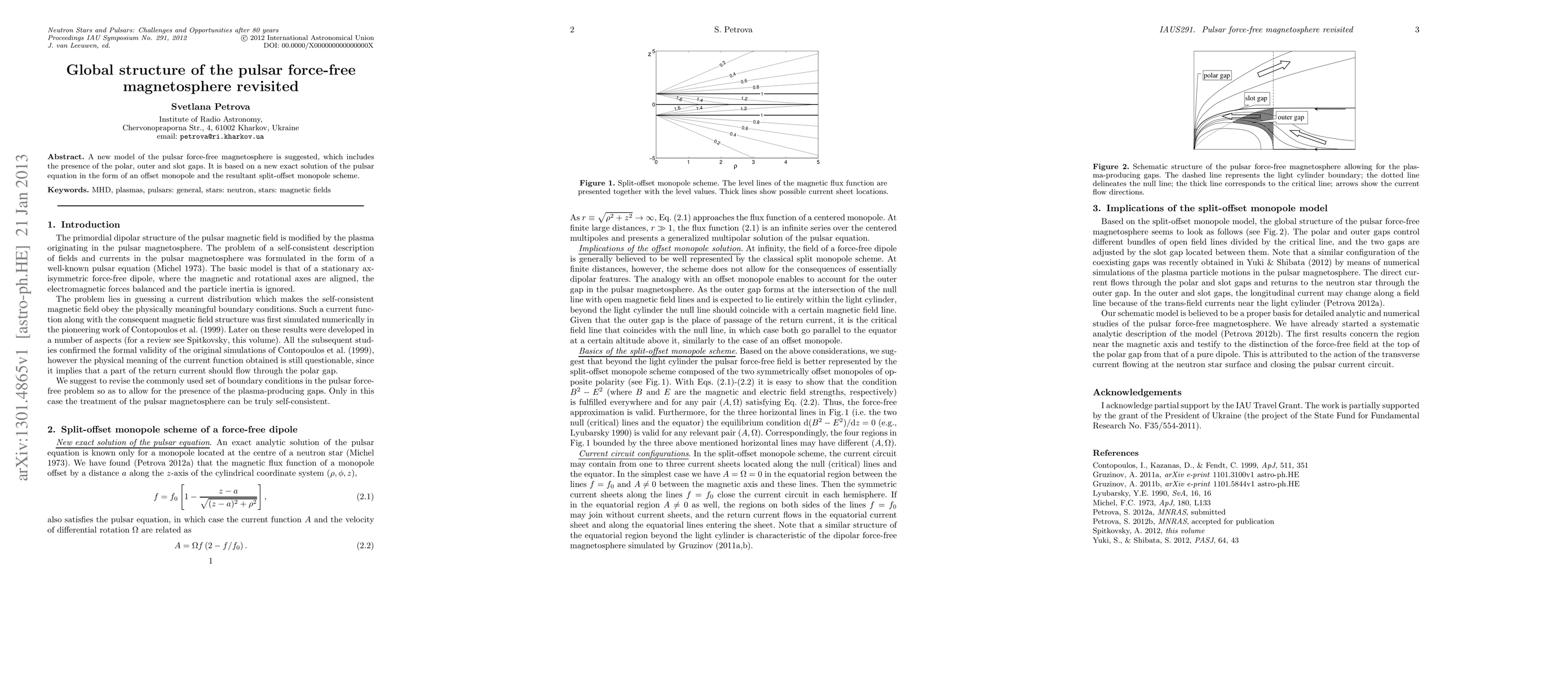 A new model of the pulsar force-free magnetosphere is suggested, which includes the presence of the polar, outer and slot gaps. It is based on a new exact solution of the pulsar equation in the form of an offset monopole and the resultant split-offset monopole scheme.