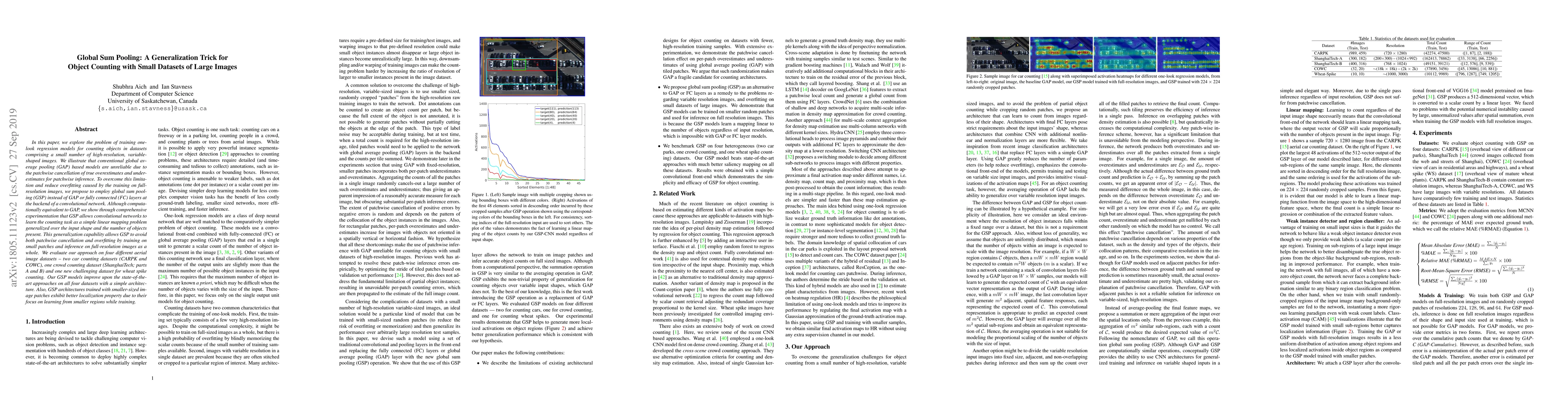 A new approach called Global Sum Pooling (GSP) improves object counting accuracy on small datasets of large images, outperforming state-of-the-art methods with a simple architecture.