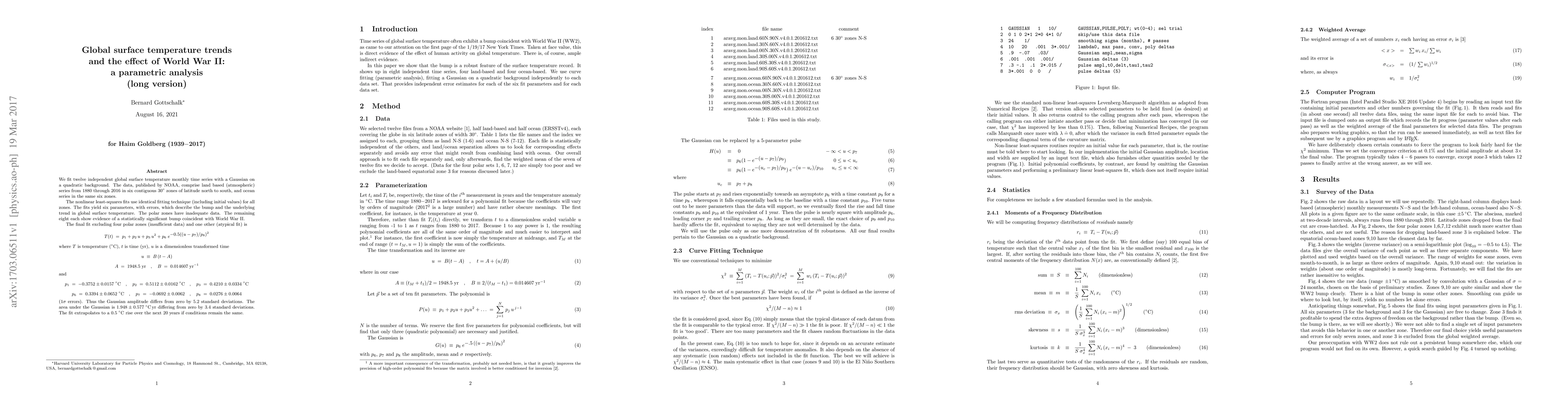 We fit 12 independent surface temperature time series (zones of latitude), 6 land- and 6 ocean-based, with a Gaussian (centered around WW2) on a quadratic background. The four polar zones are unusable. Each of the remaining 8 shows evidence of a 0.2-0.3 degree C bump, although one zone is dropped from the final analysis because of an aberrant fit. Thus, we find that a surface temperature increase around WW2 is a robust, statistically significant (5.2 sigma) feature of the data, and must either be a coincidence, due to systematic error that came and went around WW2, or direct evidence of the effect of human activity (an increase in combustion of various sorts) on the global climate. The fact that, at least in that era, the temperature recovered quickly, is encouraging. On the other hand, extrapolation of the background temperature rise predicts an increase of 0.5 degree C in the next 20 years if conditions remain the same.