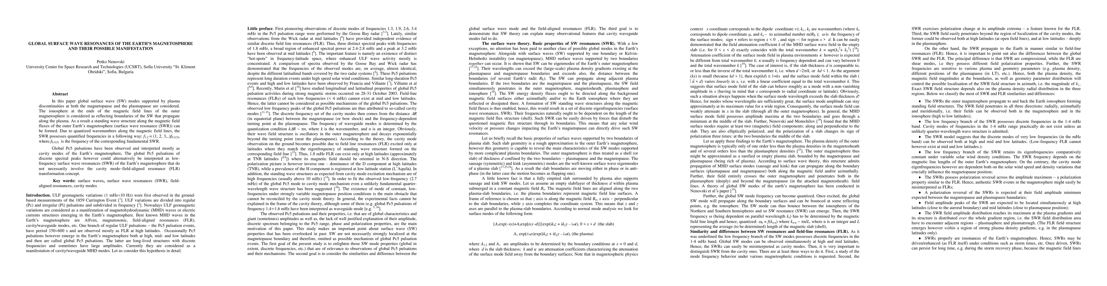 Research suggests that global surface wave resonances in the Earth's magnetosphere could explain Pc5 pulsations, offering an alternative to traditional cavity mode interpretations.
