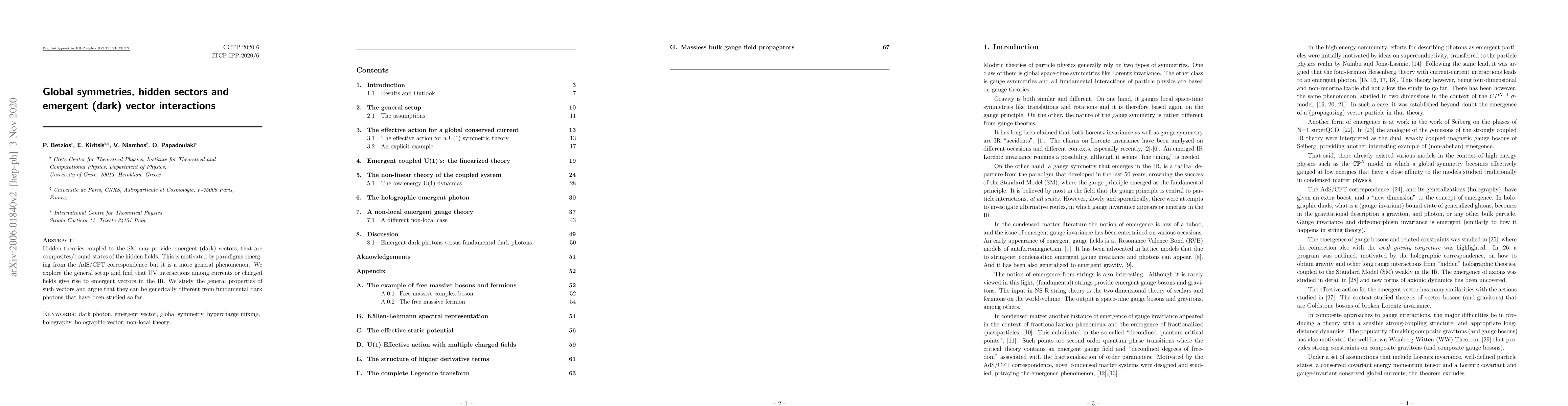 Hidden theories coupled to the SM may provide emergent (dark) vectors, that are composites/bound-states of the hidden fields. This is motivated by paradigms emerging from the AdS/CFT correspondence but it is a more general phenomenon. We explore the general setup and find that UV interactions among currents or charged fields give rise to emergent vectors in the IR. We study the general properties of such vectors and argue that they can be generically different from fundamental dark photons that have been studied so far.