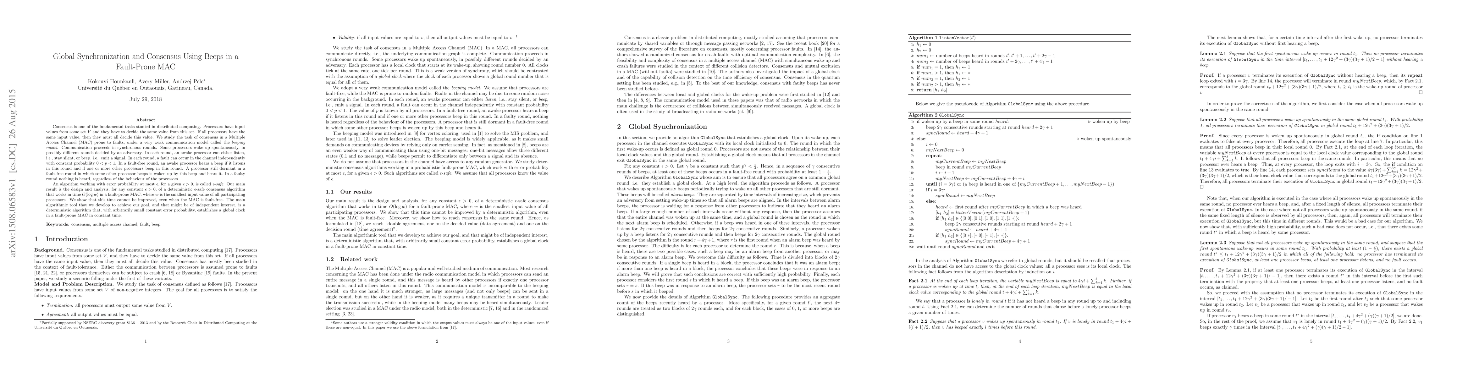 Researchers designed a consensus algorithm for distributed computing in a fault-prone MAC, achieving $O( ext{log } w)$ time complexity, where $w$ is the smallest input value, with an error probability of at most $ ext{ε}$.