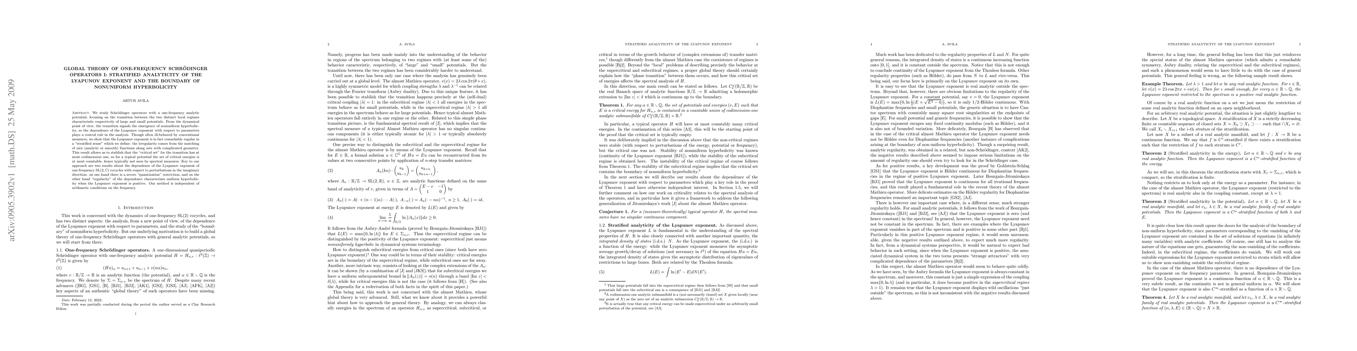 We study Schrodinger operators with a one-frequency analytic potential, focusing on the transition between the two distinct local regimes characteristic respectively of large and small potentials. From the dynamical point of view, the transition signals the emergence of nonuniform hyperbolicity, so the dependence of the Lyapunov exponent with respect to parameters plays a central role in the analysis. Though often ill-behaved by conventional measures, we show that the Lyapunov exponent is in fact remarkably regular in a ``stratified sense'' which we define: the irregularity comes from the matching of nice (analytic or smooth) functions along sets with complicated geometry. This result allows us to stablish that the ``critical set'' for the transition has at most codimension one, so for a typical potential the set of critical energies is at most countable, hence typically not seen by spectral measures. Key to our approach are two results about the dependence of the Lyapunov exponent of one-frequency $\SL(2,\C)$ cocycles with respect to perturbations in the imaginary direction: on one hand there is a severe ``quantization'' restriction, and on the other hand ``regularity'' of the dependence characterizes uniform hyperbolicity when the Lyapunov exponent is positive. Our method is independent of arithmetic conditions on the frequency.