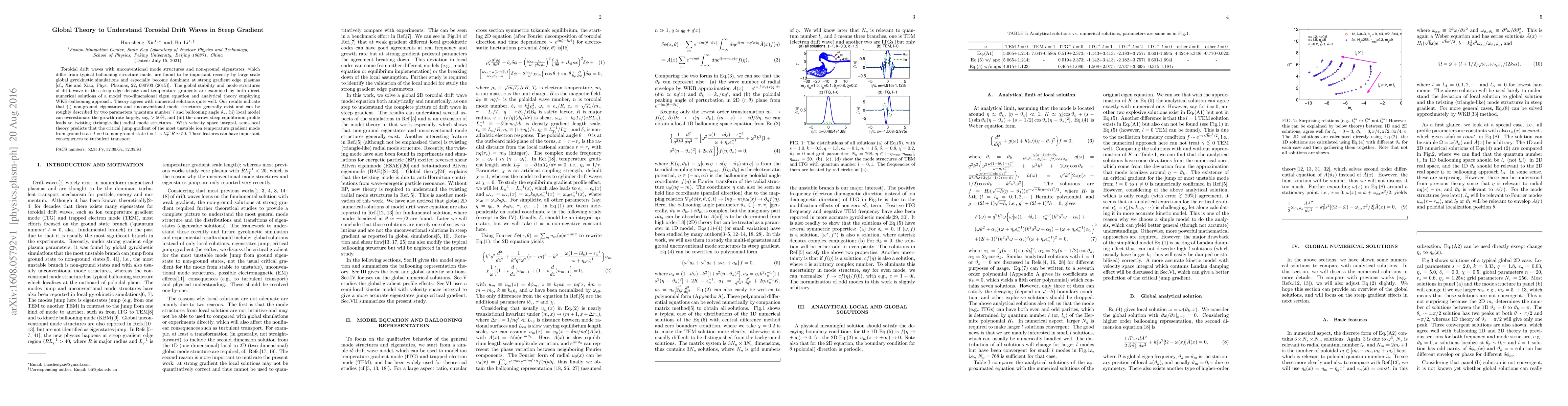 This paper develops a global theory to understand toroidal drift waves in steep gradient edge plasmas, finding that unconventional mode structures and non-ground eigenstates dominate. The theory, validated by numerical solutions and analytical WKB-ballooning approach, shows that local models can significantly overestimate growth rates, and predicts a critical gradient for mode transition.