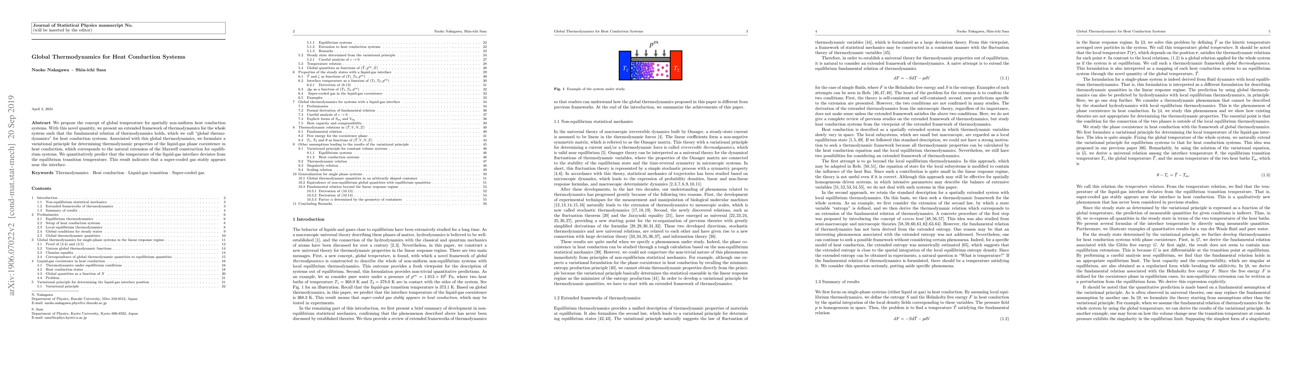 The paper introduces the concept of global temperature for non-uniform heat conduction systems, proposing "global thermodynamics" to extend thermodynamic principles. It predicts deviations in liquid-gas interface temperatures from equilibrium, indicating stable super-cooled gas near the interface.