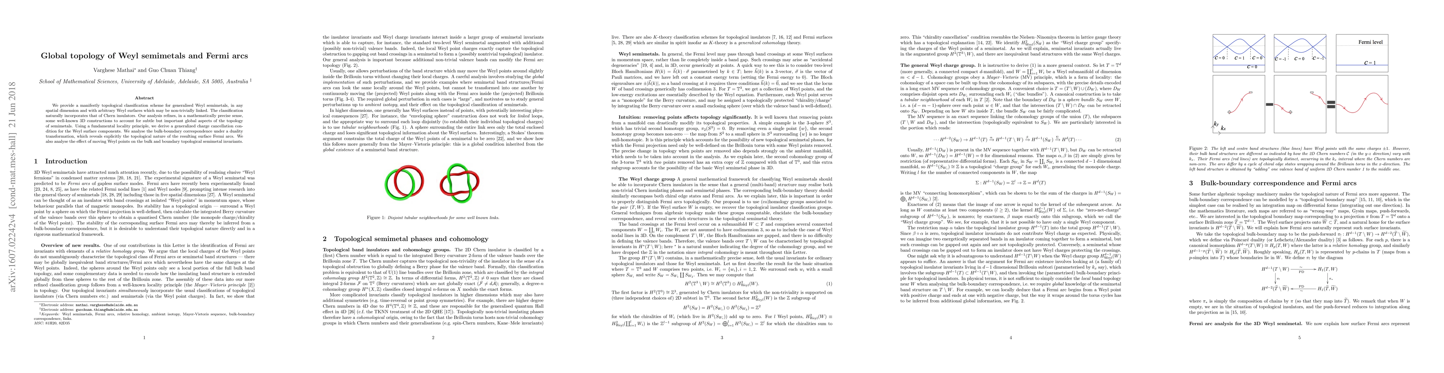 We provide a manifestly topological classification scheme for generalised Weyl semimetals, in any spatial dimension and with arbitrary Weyl surfaces which may be non-trivially linked. The classification naturally incorporates that of Chern insulators. Our analysis refines, in a mathematically precise sense, some well-known 3D constructions to account for subtle but important global aspects of the topology of semimetals. Using a fundamental locality principle, we derive a generalized charge cancellation condition for the Weyl surface components. We analyse the bulk-boundary correspondence under a duality transformation, which reveals explicitly the topological nature of the resulting surface Fermi arcs. We also analyse the effect of moving Weyl points on the bulk and boundary topological semimetal invariants.