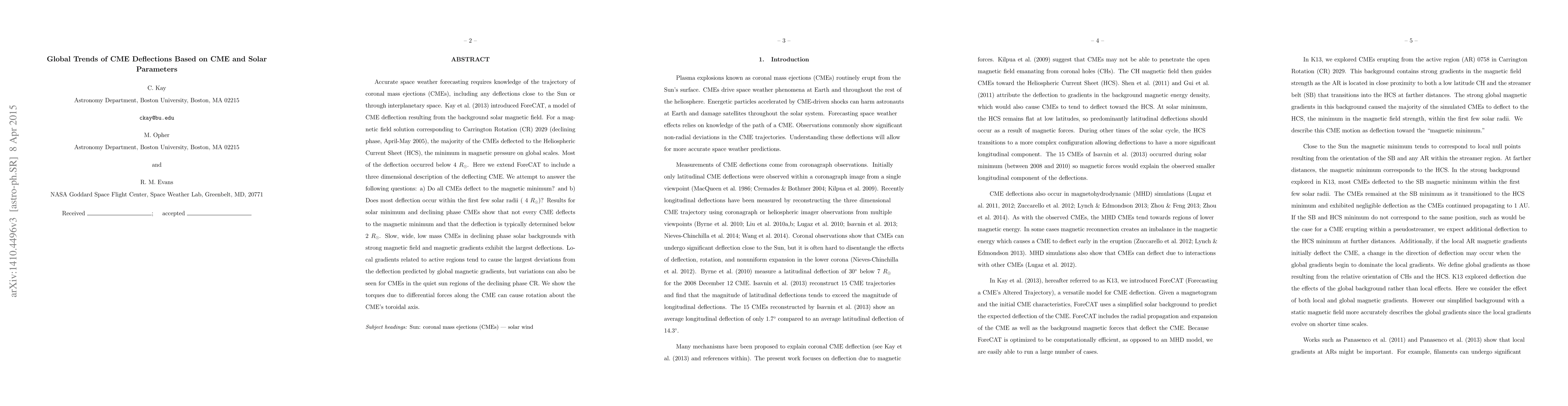 This paper extends the ForeCAT model to analyze CME deflections based on solar parameters, finding that not all CMEs deflect to the magnetic minimum and that significant deflection typically occurs within the first 2 solar radii. It highlights that slow, wide CMEs in declining phase solar conditions with strong magnetic fields experience the largest deflections.
