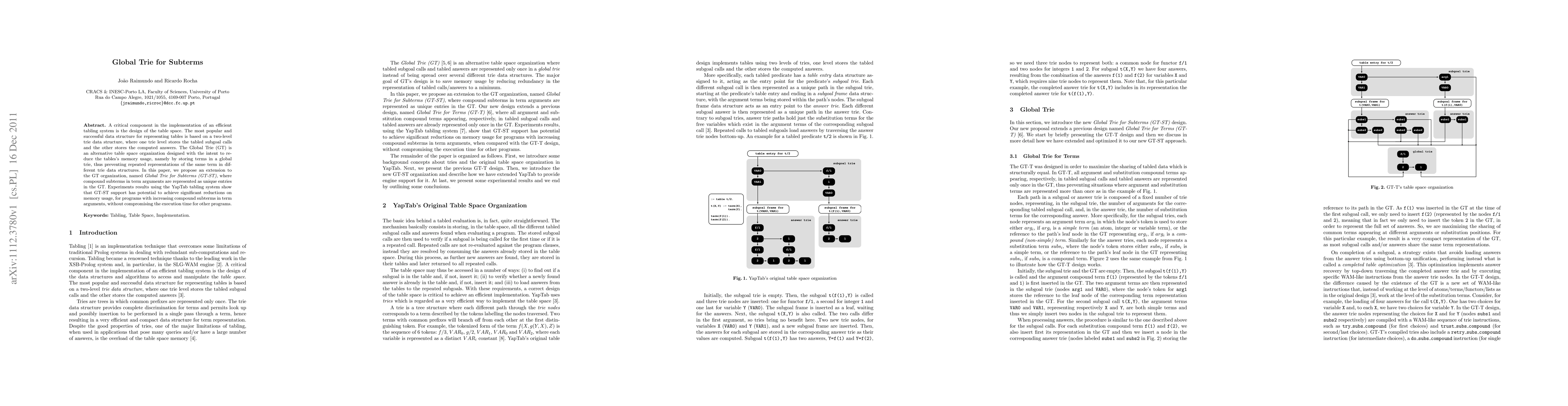 The paper proposes the Global Trie for Subterms (GT-ST) to optimize the memory usage of tabling systems by representing compound subterms as unique entries in a global trie. Experimental results using YapTab indicate that GT-ST can significantly reduce memory usage for programs with many compound subterms without affecting execution time for other programs.