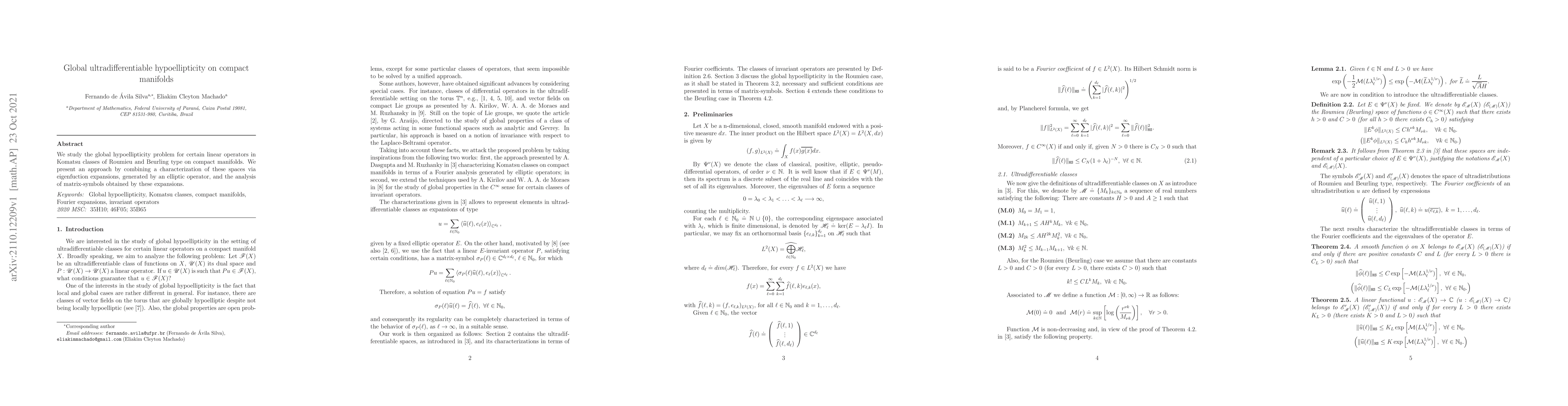 Researchers investigated hypoellipticity on compact manifolds for linear operators in specific classes of symbols, using eigenfunction expansions and matrix-symbols analysis to establish global hypoellipticity.