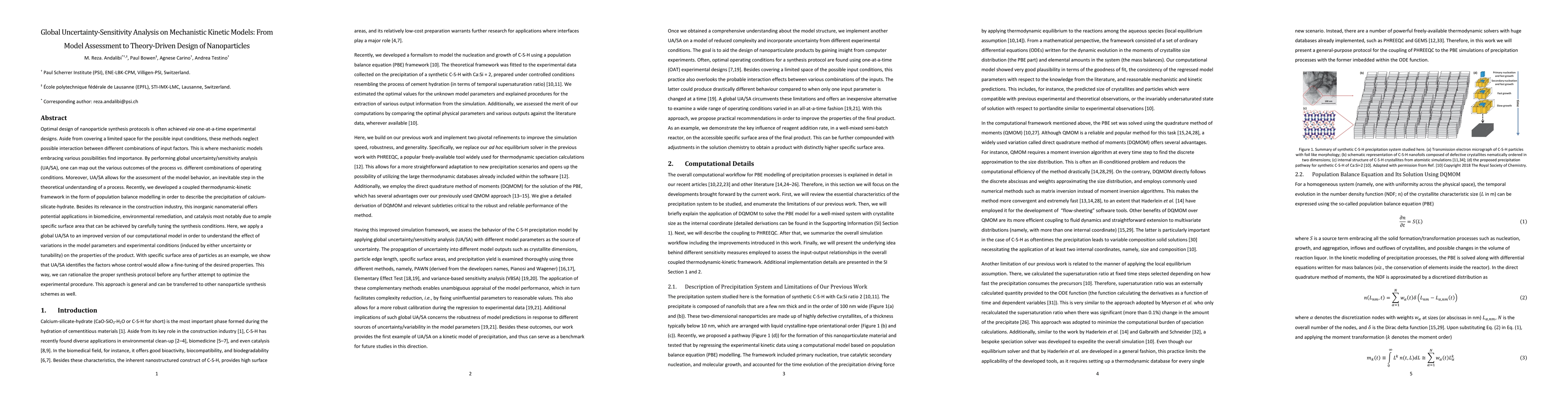 This paper employs global uncertainty-sensitivity analysis (UA/SA) on a mechanistic kinetic model to optimize nanoparticle synthesis protocols, demonstrating how it can identify key factors affecting the specific surface area of calcium-silicate-hydrate nanoparticles. The approach enables theory-driven design and fine-tuning of synthesis conditions, offering a generalizable method for other nanoparticle systems.