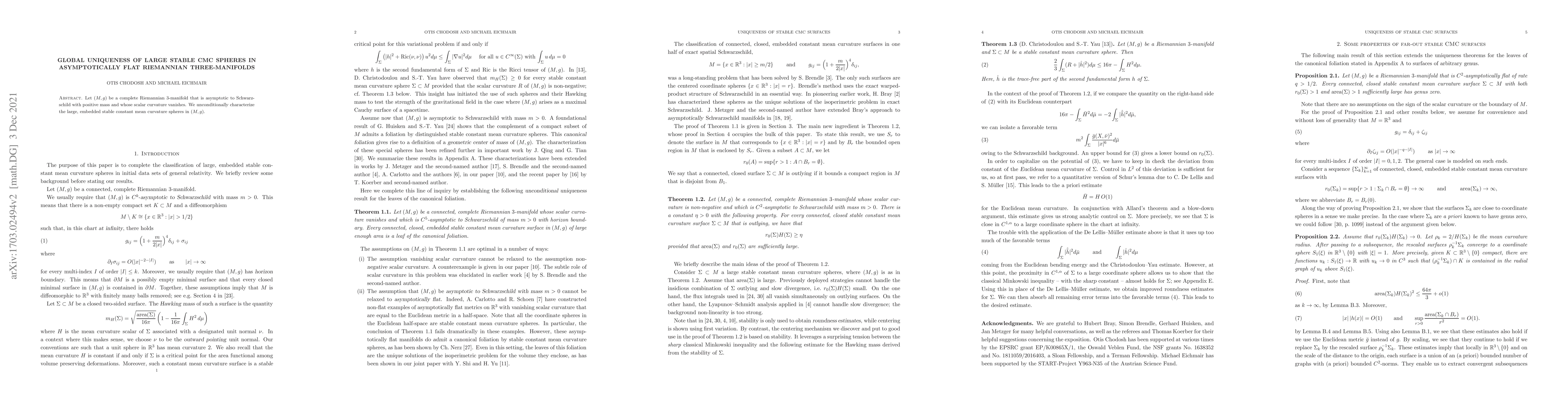 This research paper presents an unconditional characterization of large, embedded stable constant mean curvature spheres in complete Riemannian 3-manifolds asymptotic to Schwarzschild with positive mass and vanishing scalar curvature.