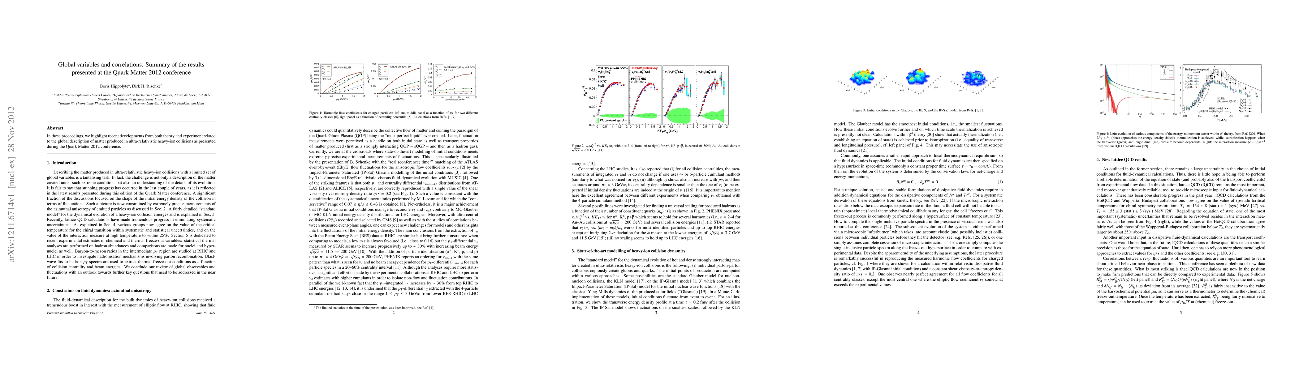 In these proceedings, we highlight recent developments from both theory and experiment related to the global description of matter produced in ultra-relativistic heavy-ion collisions as presented during the Quark Matter 2012 conference.