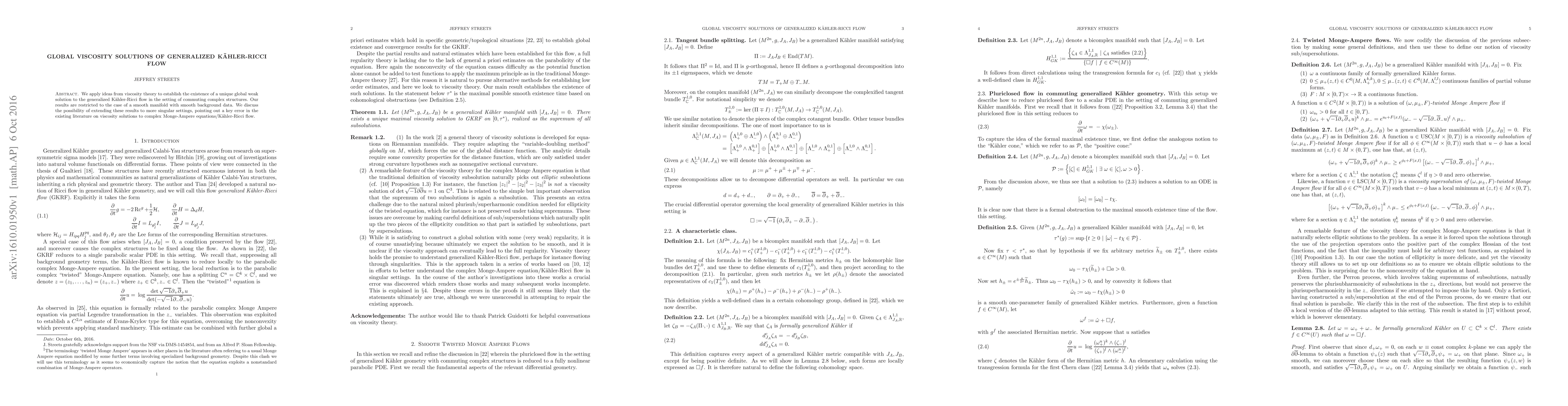 We apply ideas from viscosity theory to establish the existence of a unique global weak solution to the generalized Kahler-Ricci flow in the setting of commuting complex structures. Our results are restricted to the case of a smooth manifold with smooth background data. We discuss the possibility of extending these results to more singular settings, pointing out a key error in the existing literature on viscosity solutions to complex Monge-Ampere equations/Kahler-Ricci flow.