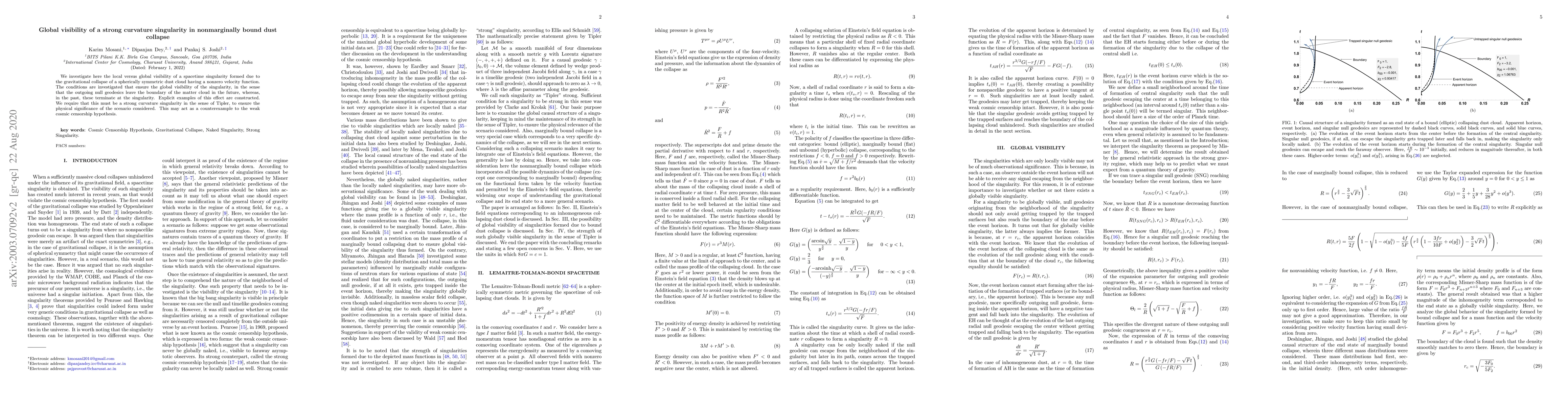 Researchers investigate a scenario where a strong curvature singularity forms in the gravitational collapse of a dust cloud, potentially countering the weak cosmic censorship hypothesis. They find conditions that ensure the global visibility of this singularity.