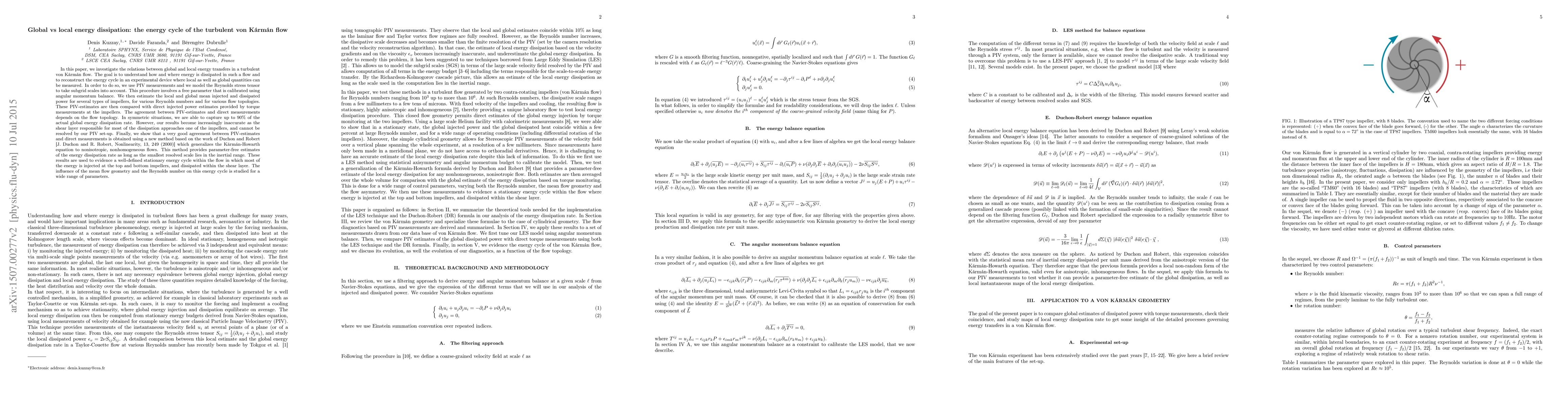 This paper explores the energy dissipation dynamics in turbulent von Kármán flow, comparing local and global energy transfers using PIV measurements and modeling. It reveals a well-defined energy cycle with most energy injected at the top and bottom impellers, dissipated in the shear layer, and highlights the influence of flow geometry and Reynolds number on this cycle.