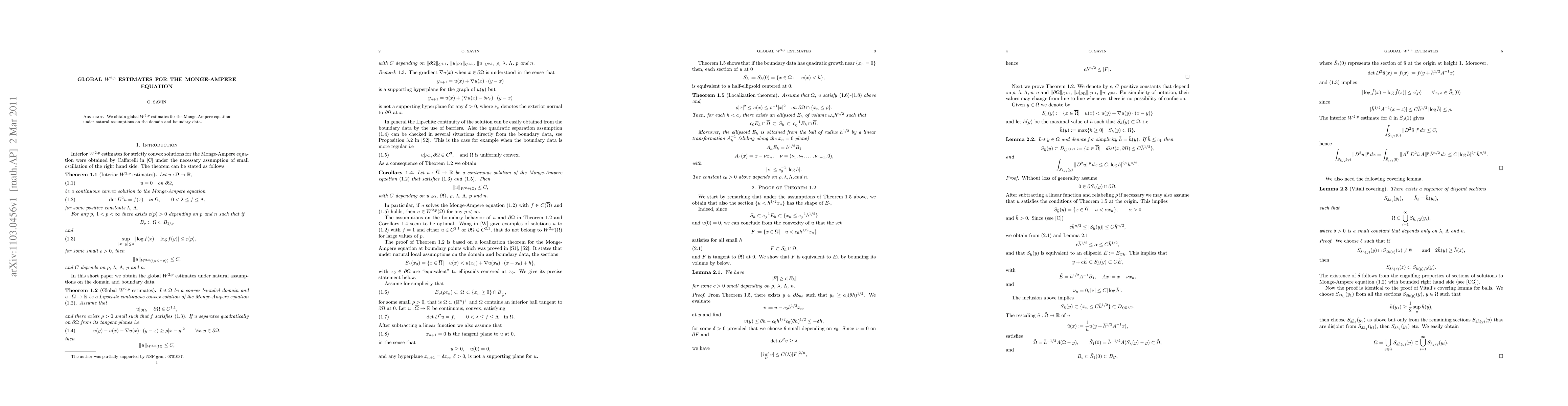 Summary: This paper establishes global $W^{2,p}$ regularity estimates for solutions to the Monge-Ampere equation, provided that the domain and boundary data satisfy certain natural conditions. These results are significant for understanding the smoothness properties of solutions to this fully nonlinear elliptic equation.