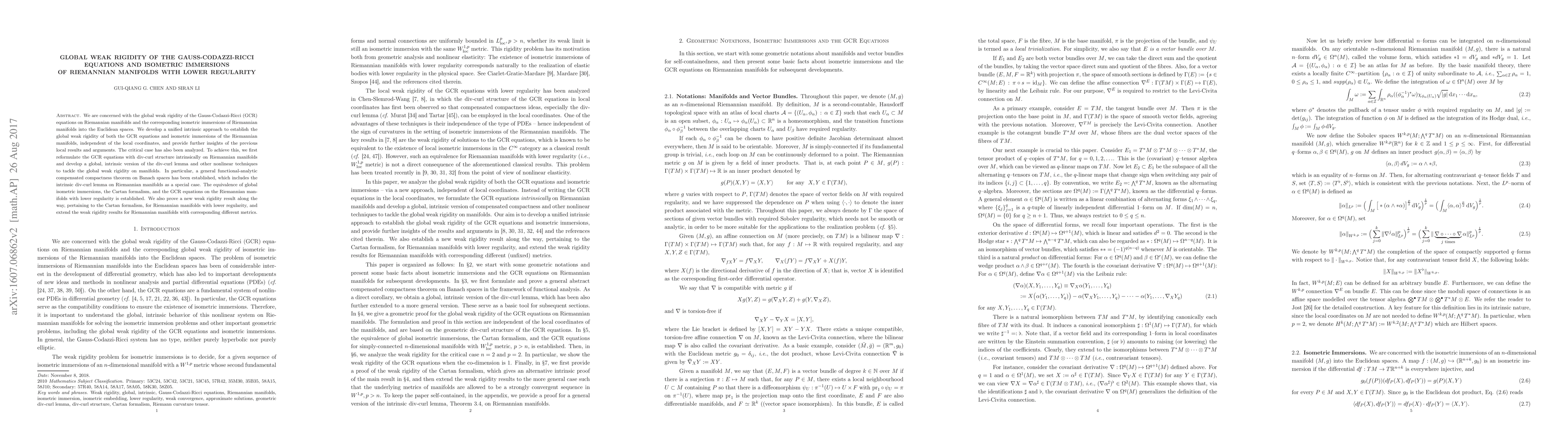 This paper develops a unified intrinsic approach to establish the global weak rigidity of the Gauss-Codazzi-Ricci equations and isometric immersions on Riemannian manifolds, leveraging intrinsic div-curl lemmas and functional-analytic techniques, while extending results for manifolds with lower regularity.