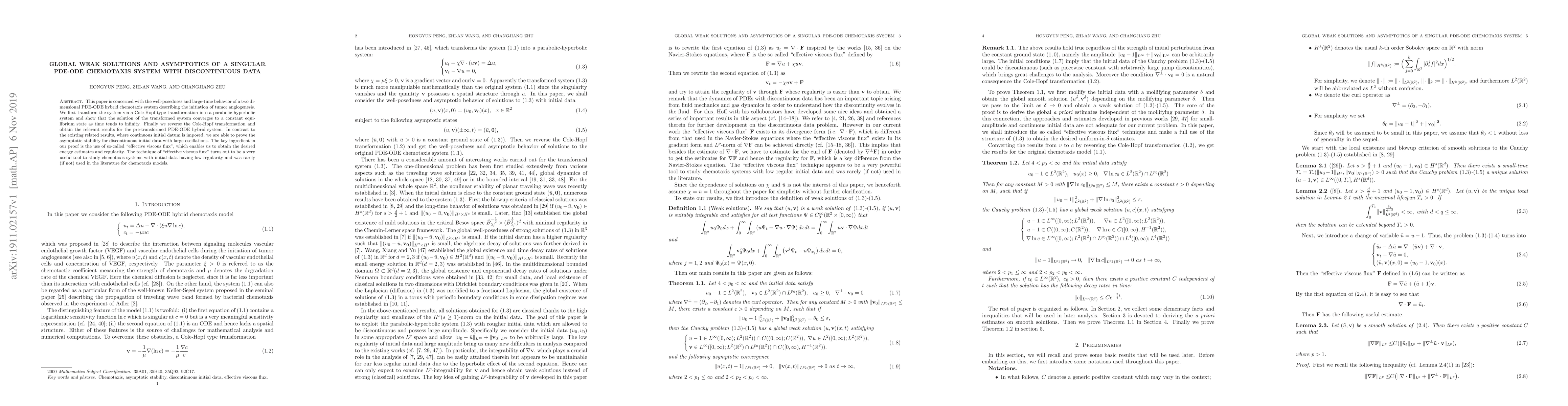 This paper investigates the well-posedness and large-time behavior of a chemotaxis system modeling tumor angiogenesis, showing it converges to a constant equilibrium state as time tends to infinity, even with discontinuous initial data.