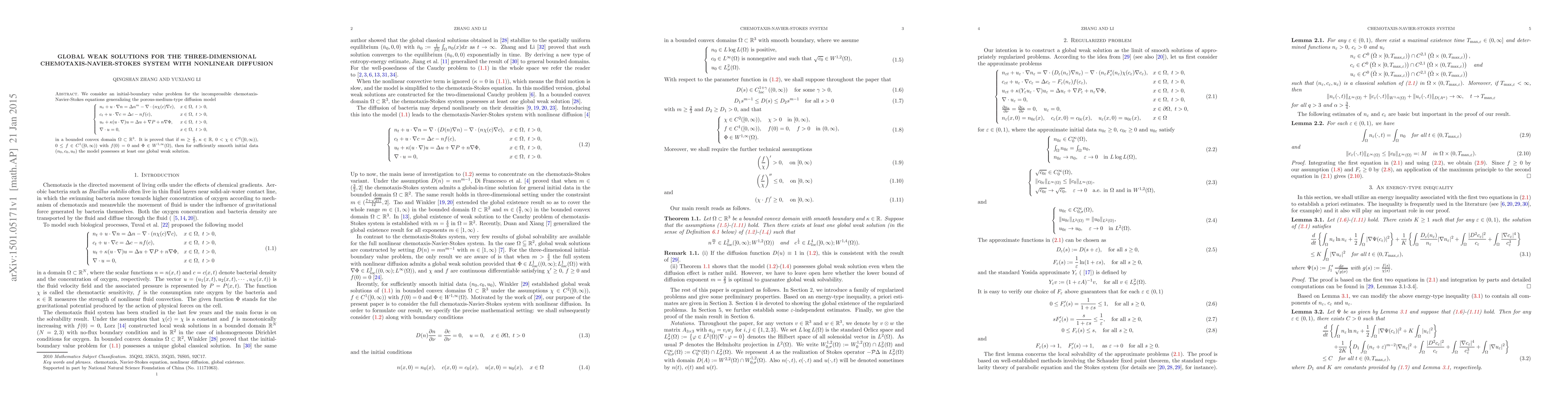 This paper proves the existence of global weak solutions for the three-dimensional chemotaxis-Navier-Stokes system with nonlinear diffusion, under specific conditions on the parameters and initial data. The conditions ensure the model's viability for sufficiently smooth initial conditions.
