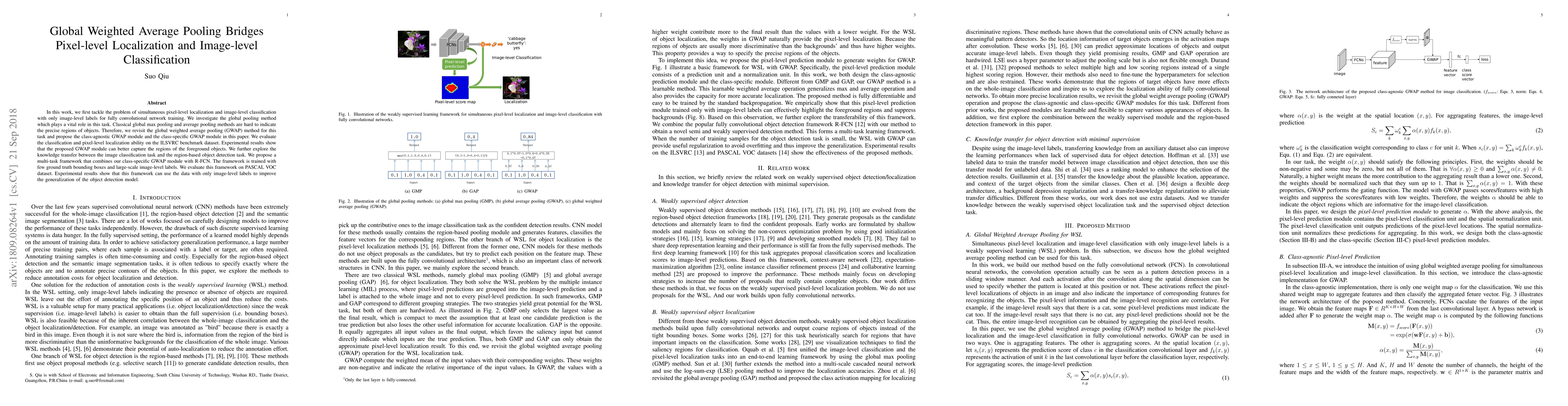 This paper proposes global weighted average pooling (GWAP) to bridge pixel-level localization and image-level classification using only image-level labels. The GWAP module enhances the detection of foreground objects and improves the generalization of object detection models when trained with limited ground truth bounding boxes.