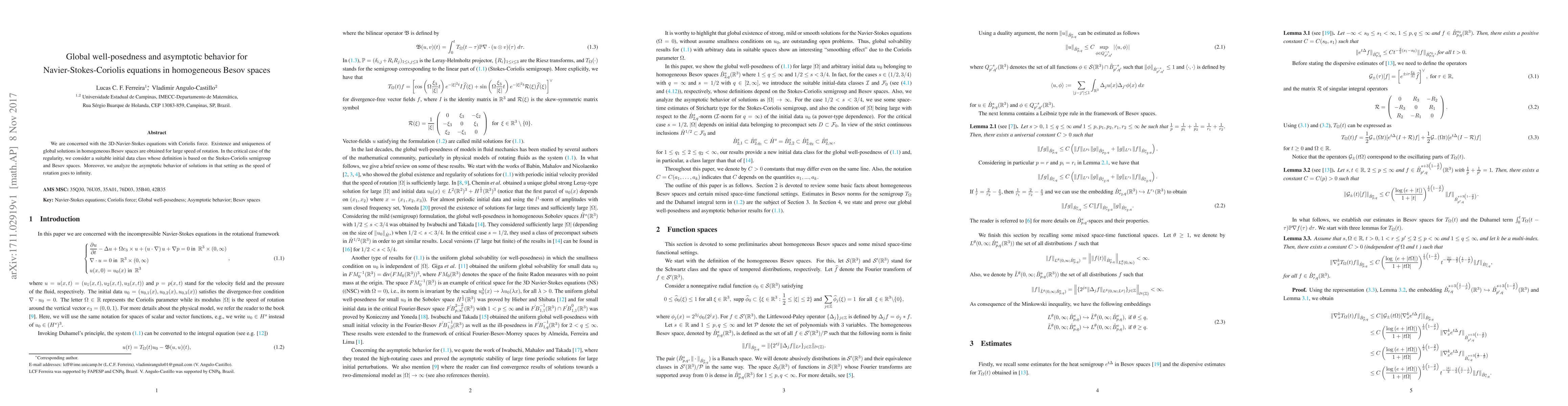This paper establishes global well-posedness and investigates the asymptotic behavior of 3D Navier-Stokes equations with Coriolis force in homogeneous Besov spaces, proving existence and uniqueness for large rotational speeds and analyzing the solution's behavior as rotation speed approaches infinity.