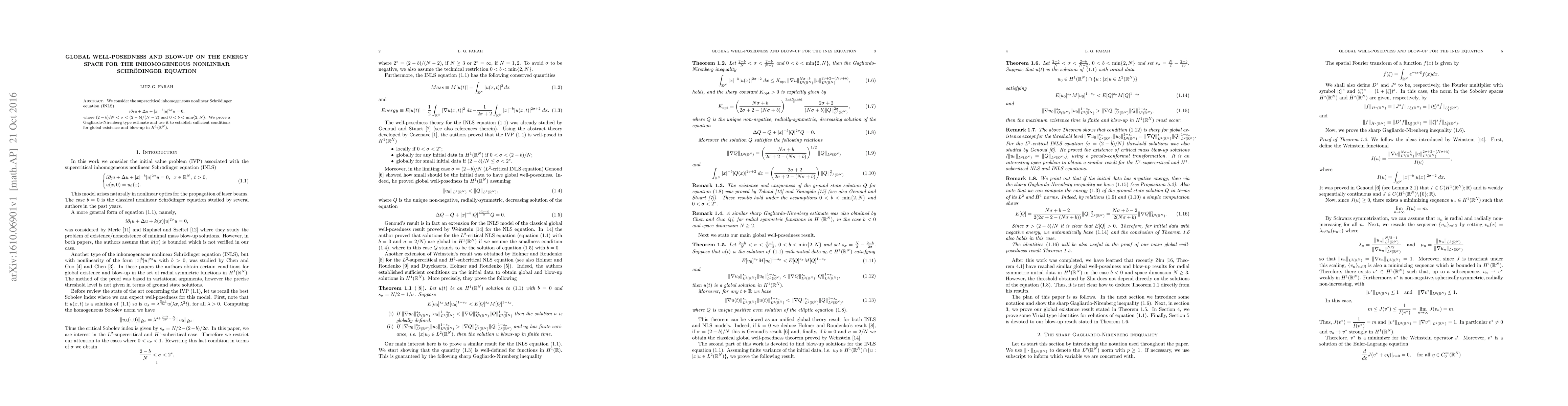 This paper investigates the supercritical inhomogeneous nonlinear Schrödinger equation (INLS) and establishes sufficient conditions for global existence and blow-up in the energy space $H^1(\mathbb{R}^N)$. The authors prove a Gagliardo-Nirenberg type estimate to achieve these results.