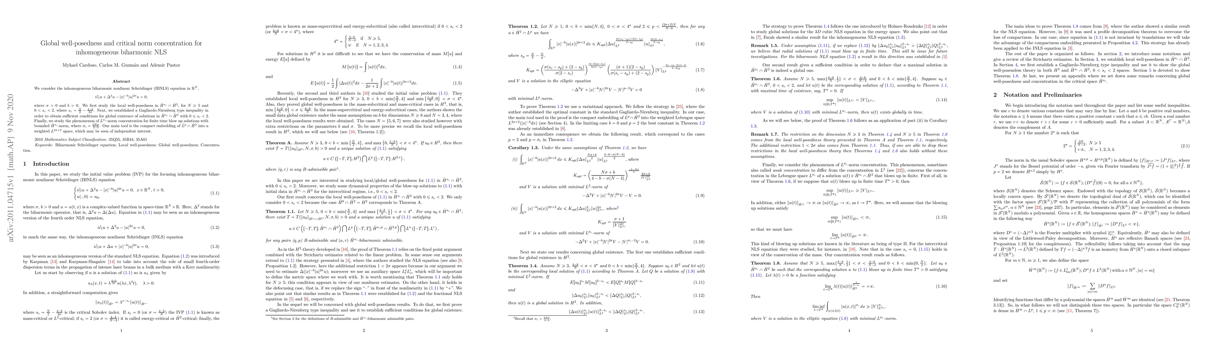 We consider the inhomogeneous biharmonic nonlinear Schr\"odinger (IBNLS)