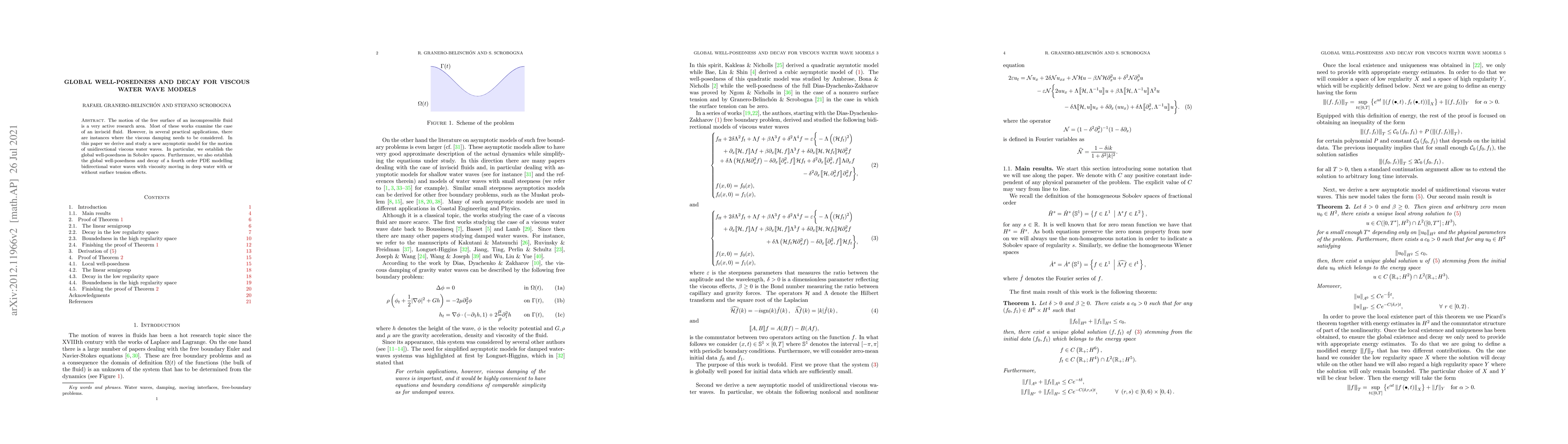 This paper develops a new asymptotic model for unidirectional and bidirectional viscous water waves, establishing global well-posedness in Sobolev spaces and proving decay for a fourth-order PDE that accounts for viscous damping and surface tension effects in deep water.