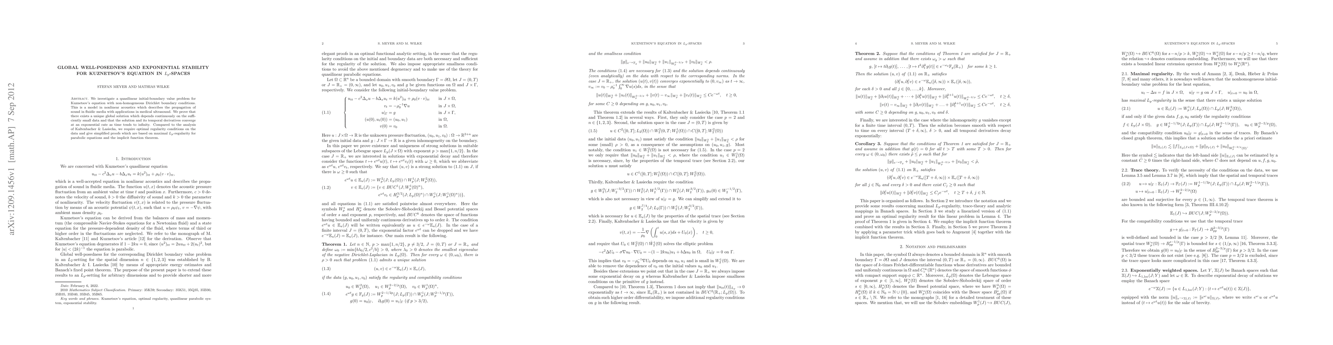 This research proves global well-posedness and exponential stability for Kuznetsov's equation, a model in nonlinear acoustics describing sound propagation in fluidic media, using optimal regularity conditions on the data and simplified proofs based on maximal L_p-regularity for parabolic equations and the implicit function theorem.