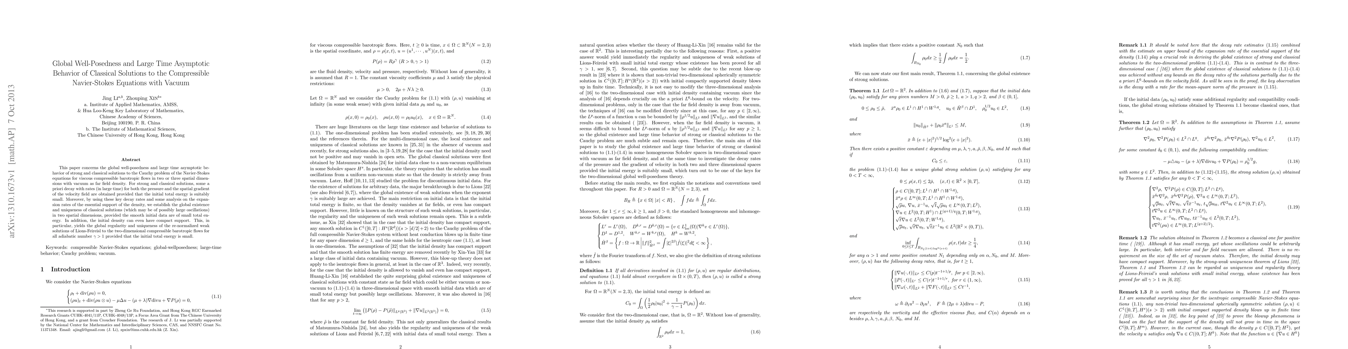 The paper employs a combination of a priori estimates and the theory of elliptic partial differential equations to analyze the global well-posedness and asymptotic behavior of classical solutions to the compressible Navier-Stokes equations in two or three spatial dimensions with vacuum as far-field density.