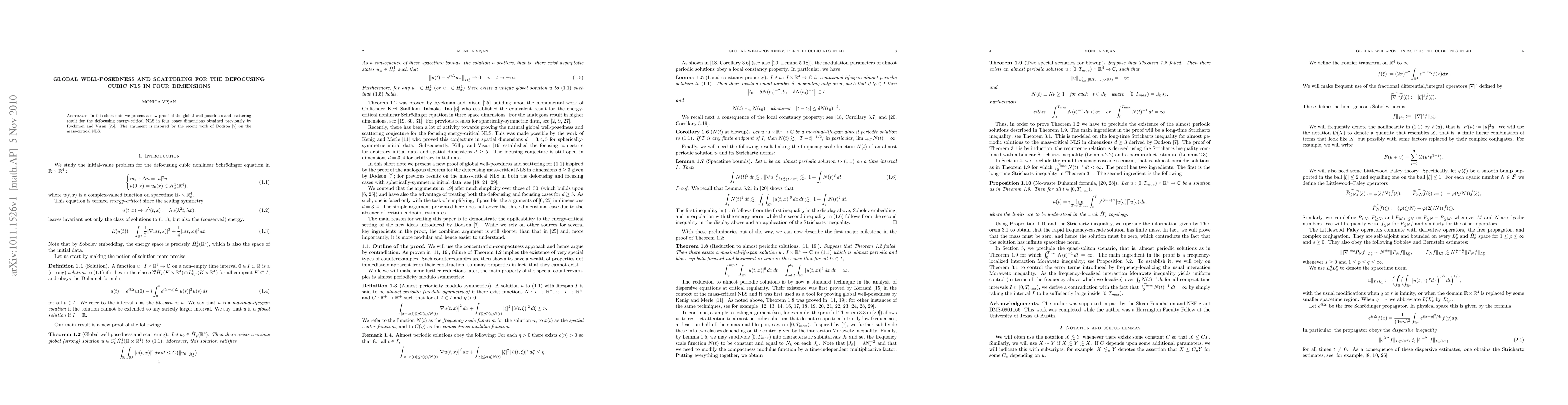 Two-line summary: This paper provides a novel proof for the global well-posedness and scattering of the defocusing cubic nonlinear Schrödinger equation (NLS) in four dimensions, previously established by Ryckman and Visan. The proof leverages recent techniques developed by Dodson for the mass-critical NLS.