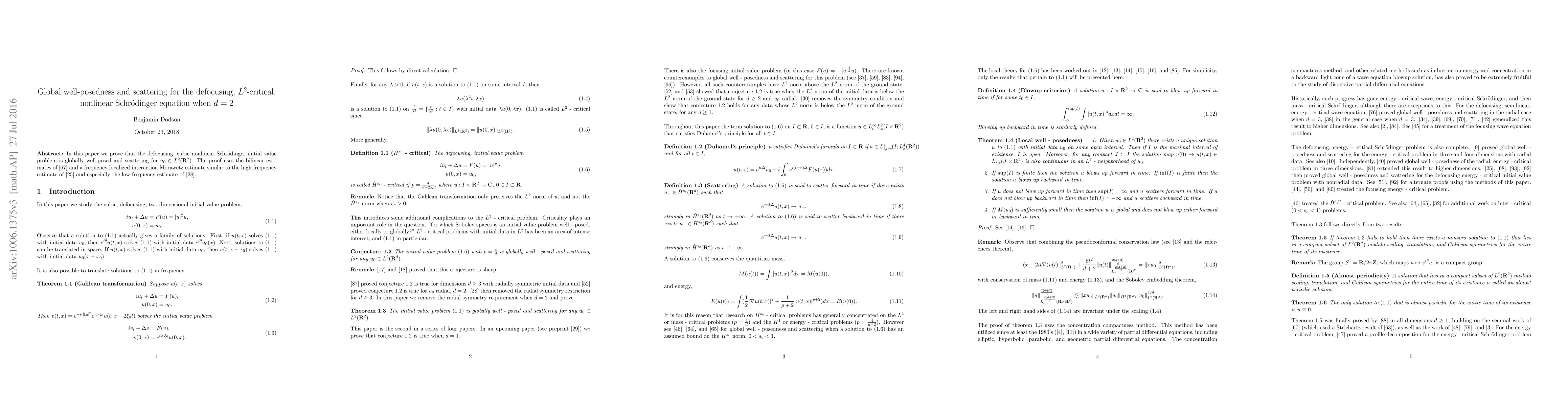 This paper proves global well-posedness and scattering for the defocusing, cubic nonlinear Schrödinger equation in two dimensions with initial data in $L^{2}(\mathbf{R}^{2})$. The authors utilize a frequency localized interaction Morawetz estimate to achieve these results.
