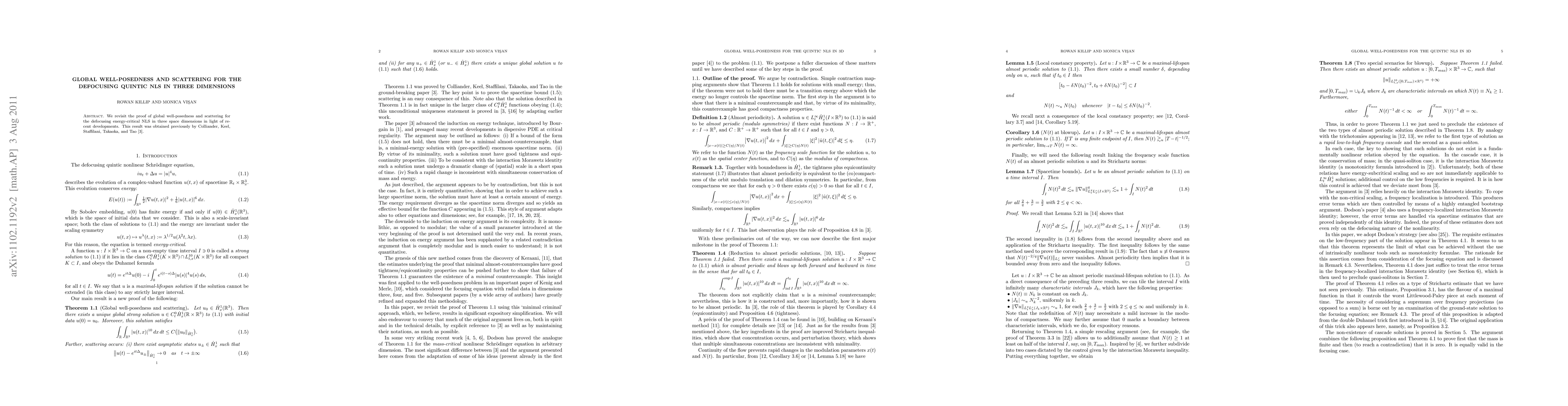 This paper addresses the global well-posedness and scattering of the defocusing quintic nonlinear Schrödinger equation in three dimensions, building on recent advancements and revisiting the results initially proven by Colliander et al.