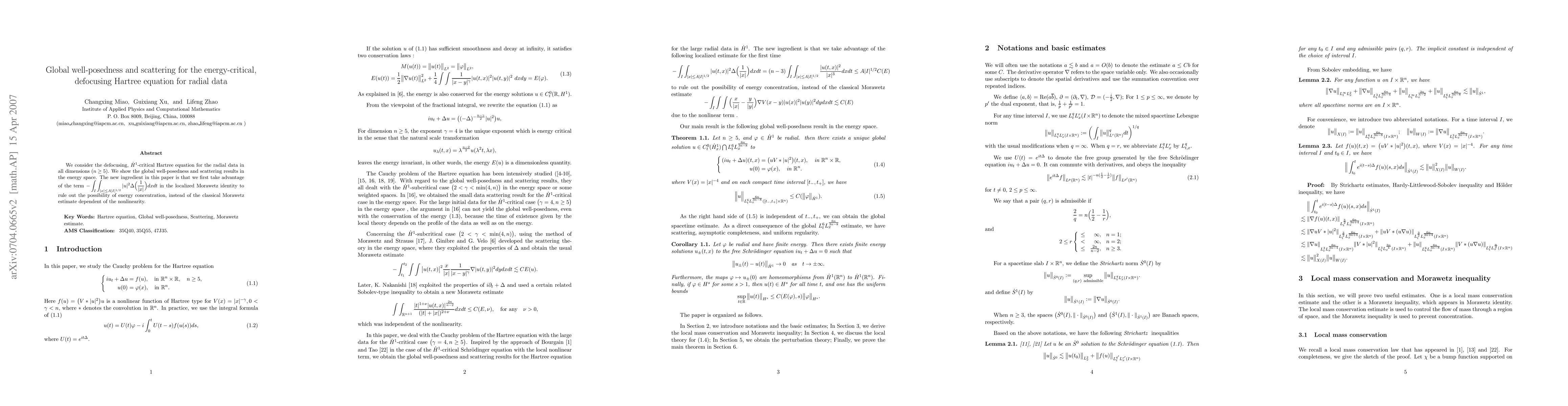 This paper establishes global well-posedness and scattering for the defocusing, $\dot{H}^1$-critical Hartree equation in all dimensions $n \geq 5$ for radial data. The key innovation is using a localized Morawetz identity to prevent energy concentration, rather than relying on the classical nonlinearity-dependent estimate.