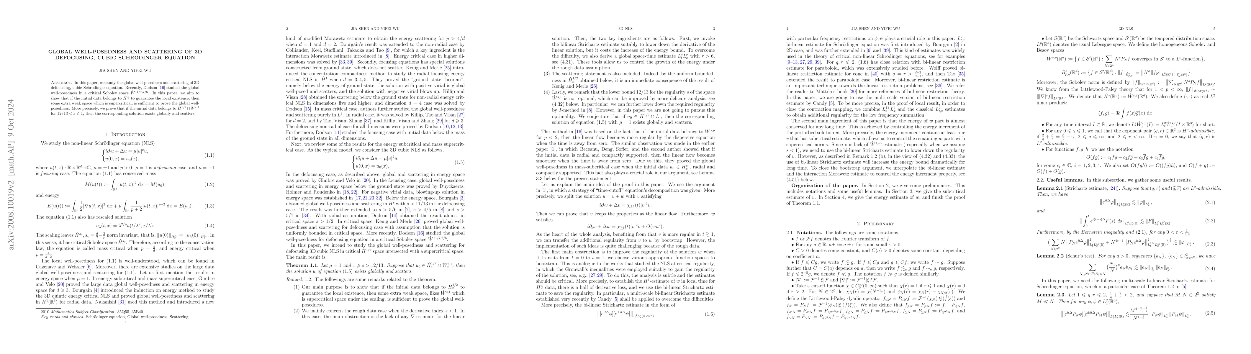 defocusing, cubic Schr\"odinger equation. Recently, Dodson [arXiv:2004.09618]