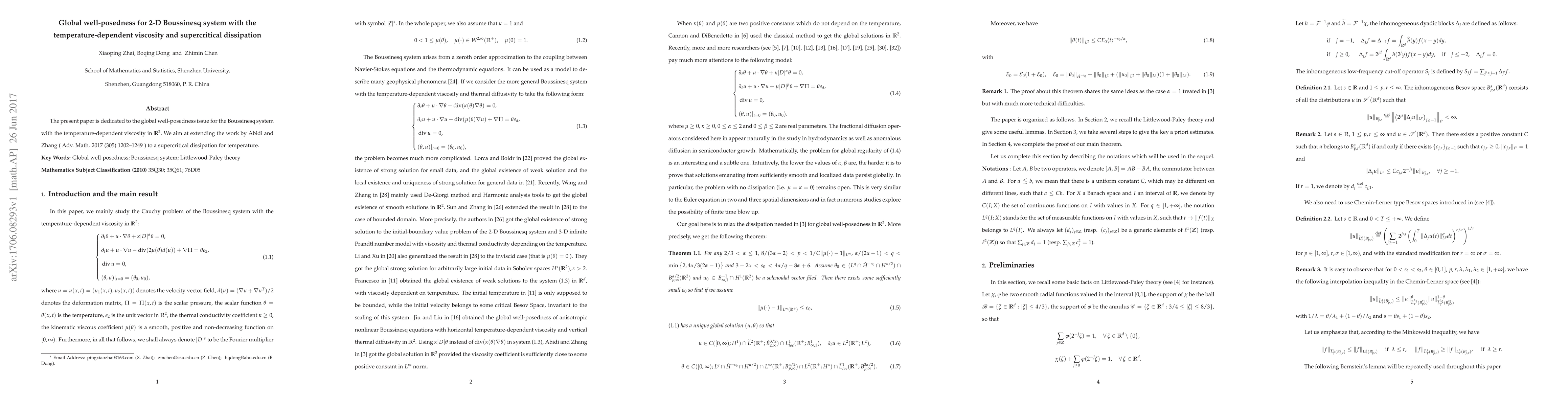 This paper investigates the global well-posedness of the 2-D Boussinesq system with temperature-dependent viscosity in $\mathbb{R}^2$, extending previous results to include supercritical dissipation for temperature.