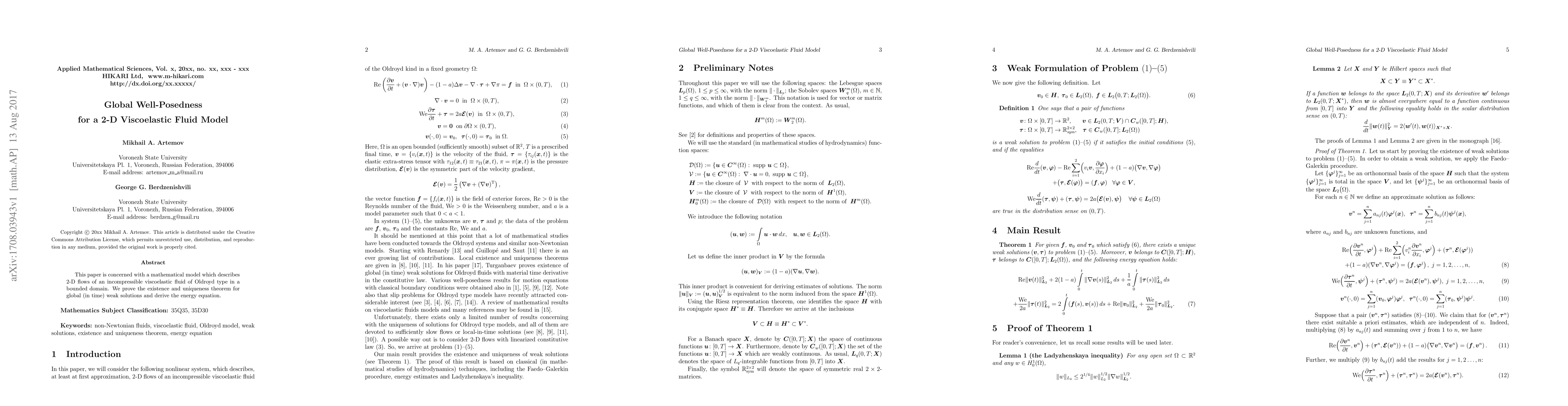 Researchers prove the existence of unique global solutions for 2-D viscoelastic fluid flows in a bounded domain. The study establishes an energy equation to describe these phenomena.