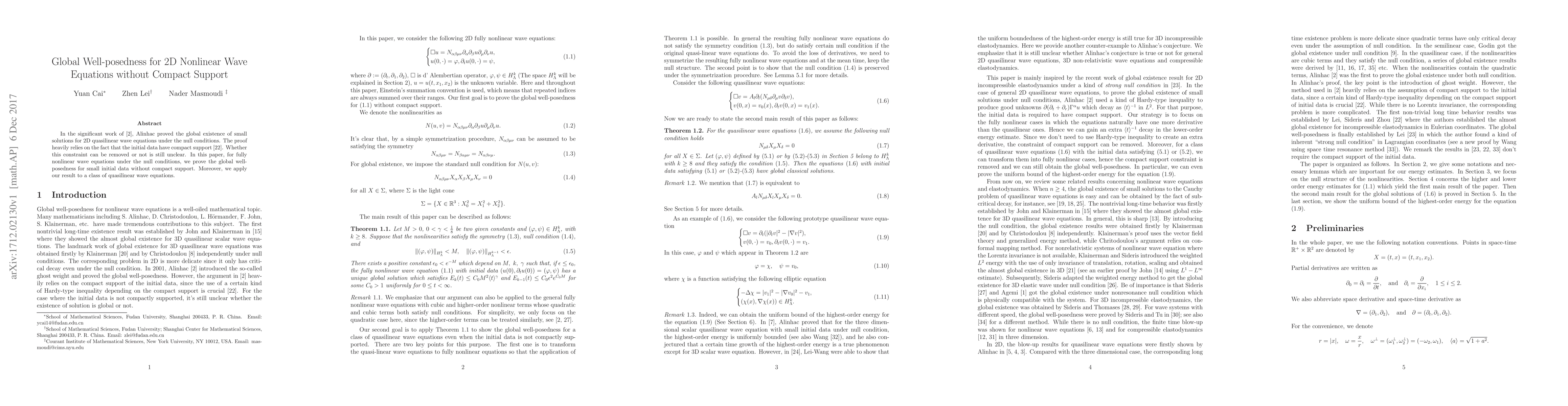 This paper proves global well-posedness for fully nonlinear 2D wave equations under null conditions, removing the previous constraint of compact support for initial data. The result is also extended to a class of quasilinear wave equations.