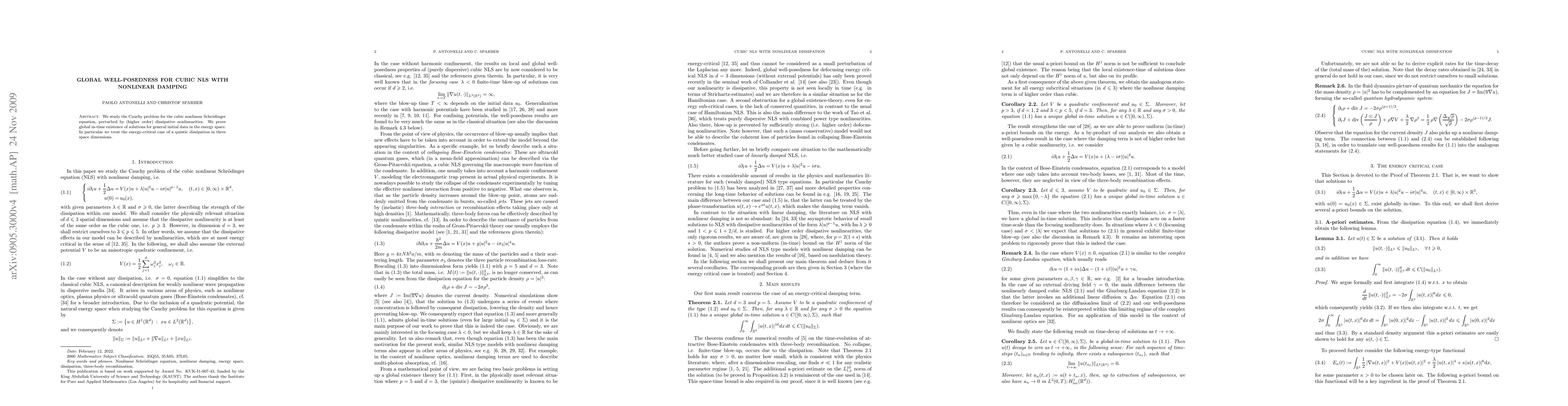 This research proves that the cubic nonlinear Schroedinger equation with certain types of dissipation can have solutions that exist globally in time for general initial data.