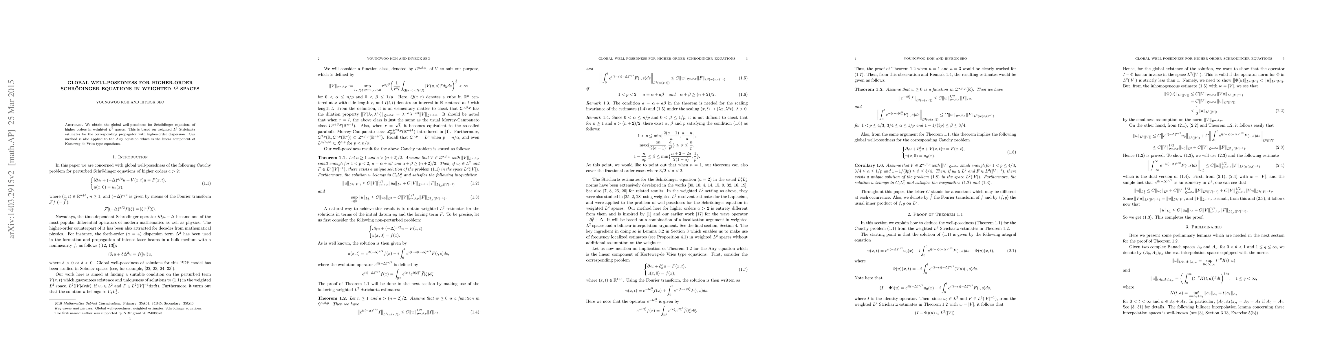 Summary: This paper establishes global well-posedness for higher-order Schrödinger equations in weighted $L^2$ spaces using weighted Strichartz estimates, and extends the method to the Airy equation, a linear component of Korteweg-de Vries type equations.