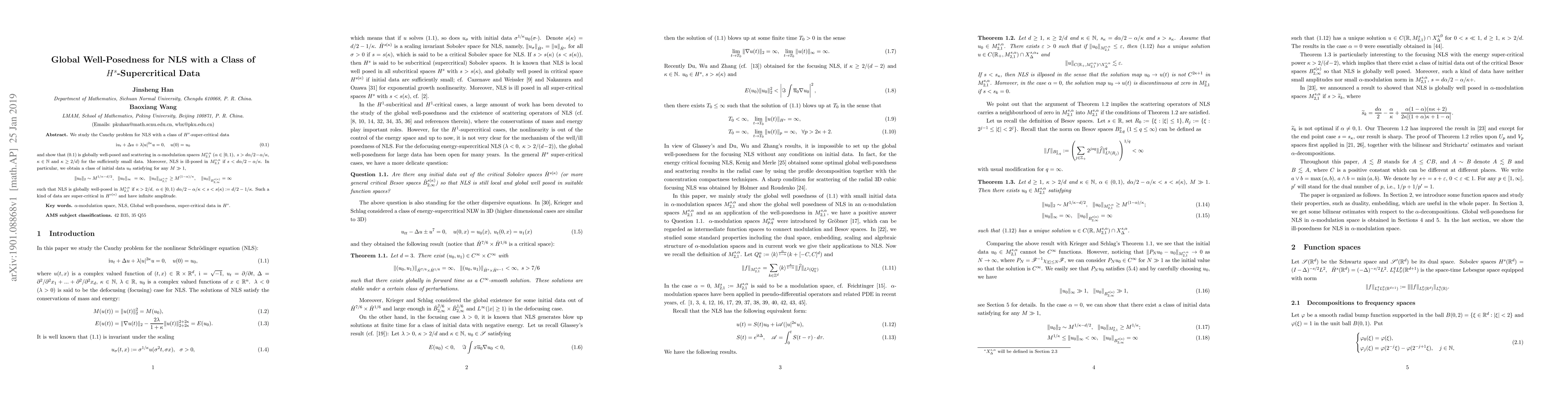\nonumber \end{align} such that NLS is globally well-posed in