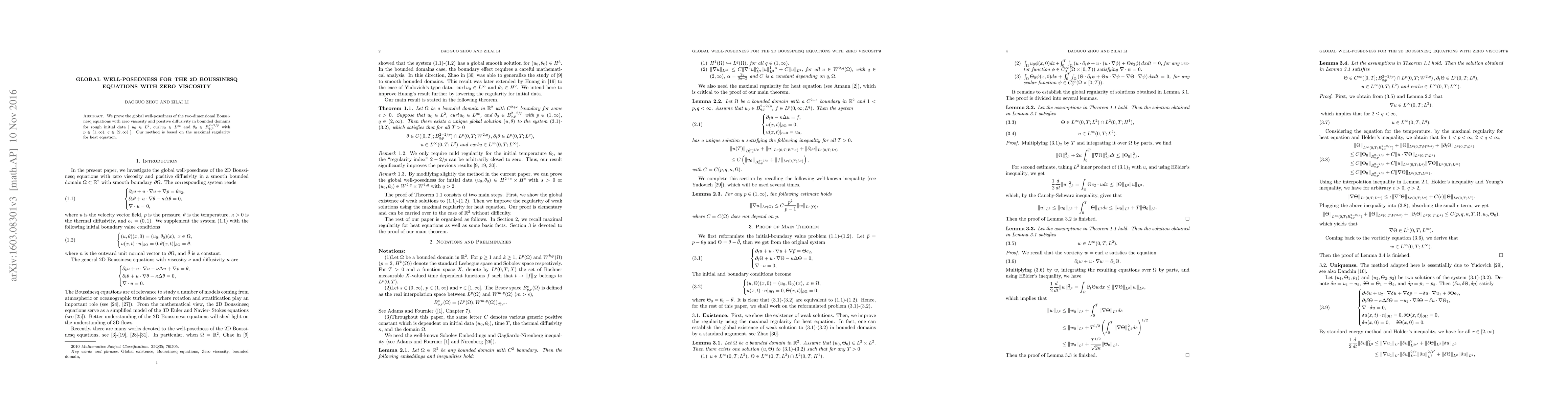 This paper proves global well-posedness for the 2D Boussinesq equations with zero viscosity and positive diffusivity in bounded domains, given rough initial data. The method leverages maximal regularity for the heat equation.