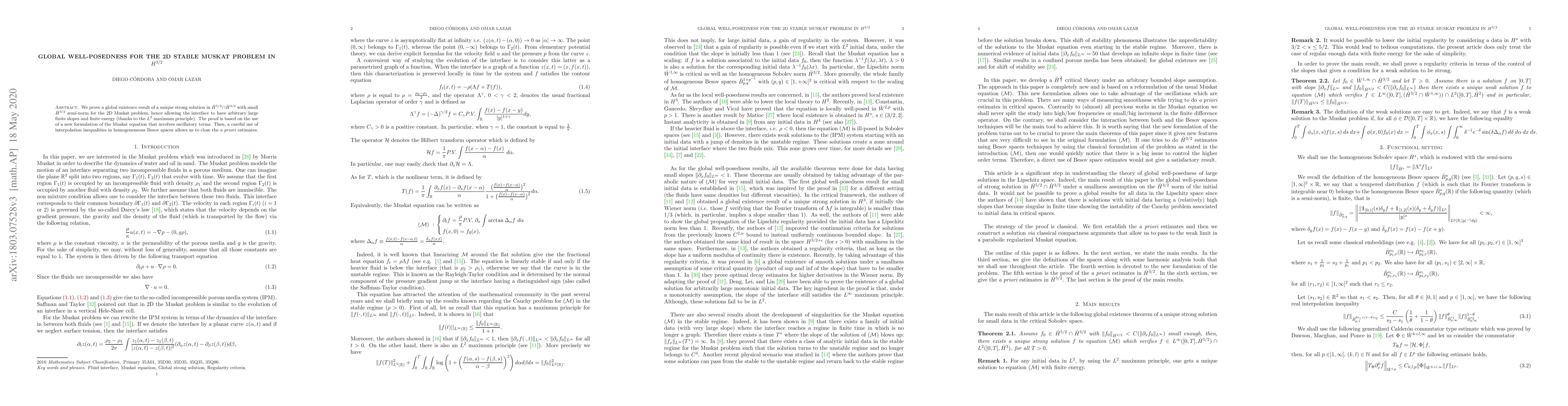 This paper proves global well-posedness for the 2D stable Muskat problem, establishing a unique strong solution in $\dot H^{5/2} \cap \dot H^{3/2}$ with small $\dot H^{3/2}$ semi-norm. The solution allows for large interface slopes and finite energy, utilizing a new formulation of the Muskat equation incorporating oscillatory terms and employing interpolation inequalities in homogeneous Besov spaces.